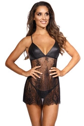 Axami Dame Nachthemd Set Zweiteilig Reizwäsche Sinnlich Gemustert Durchsichtig String V-9789, Schwarz