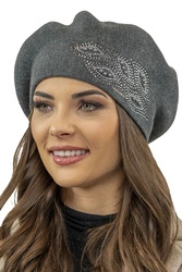 Vivisence Damen Baskenmütze mit Zirkonia-Applikation Ideal für Wintertage 7051, dunkelgrau