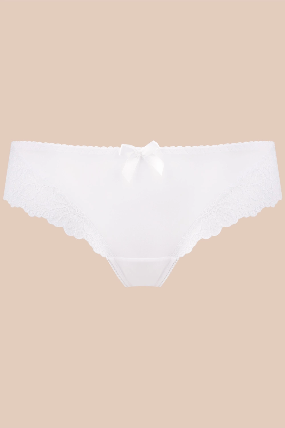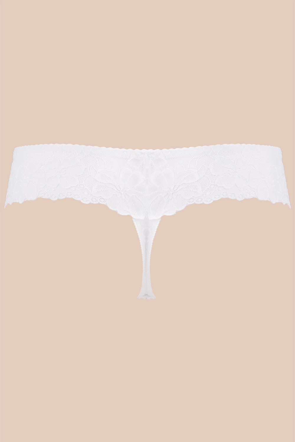 - Klassischer String gefertigt aus weichem, leicht glänzendem Gewebestoff und eleganter Spitze