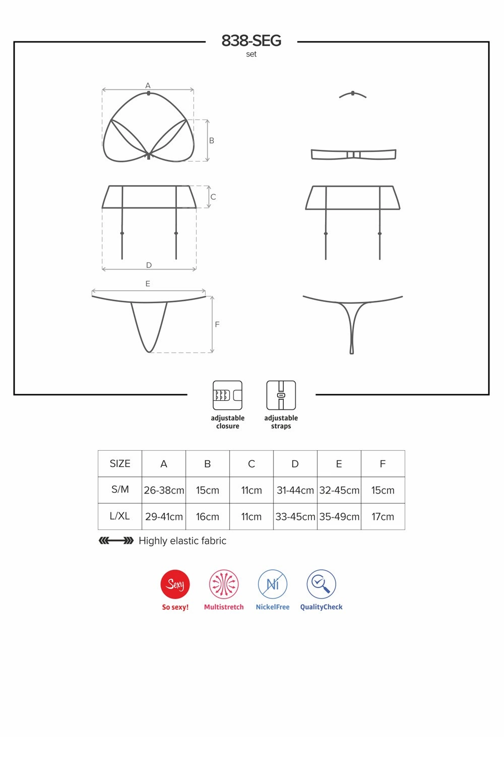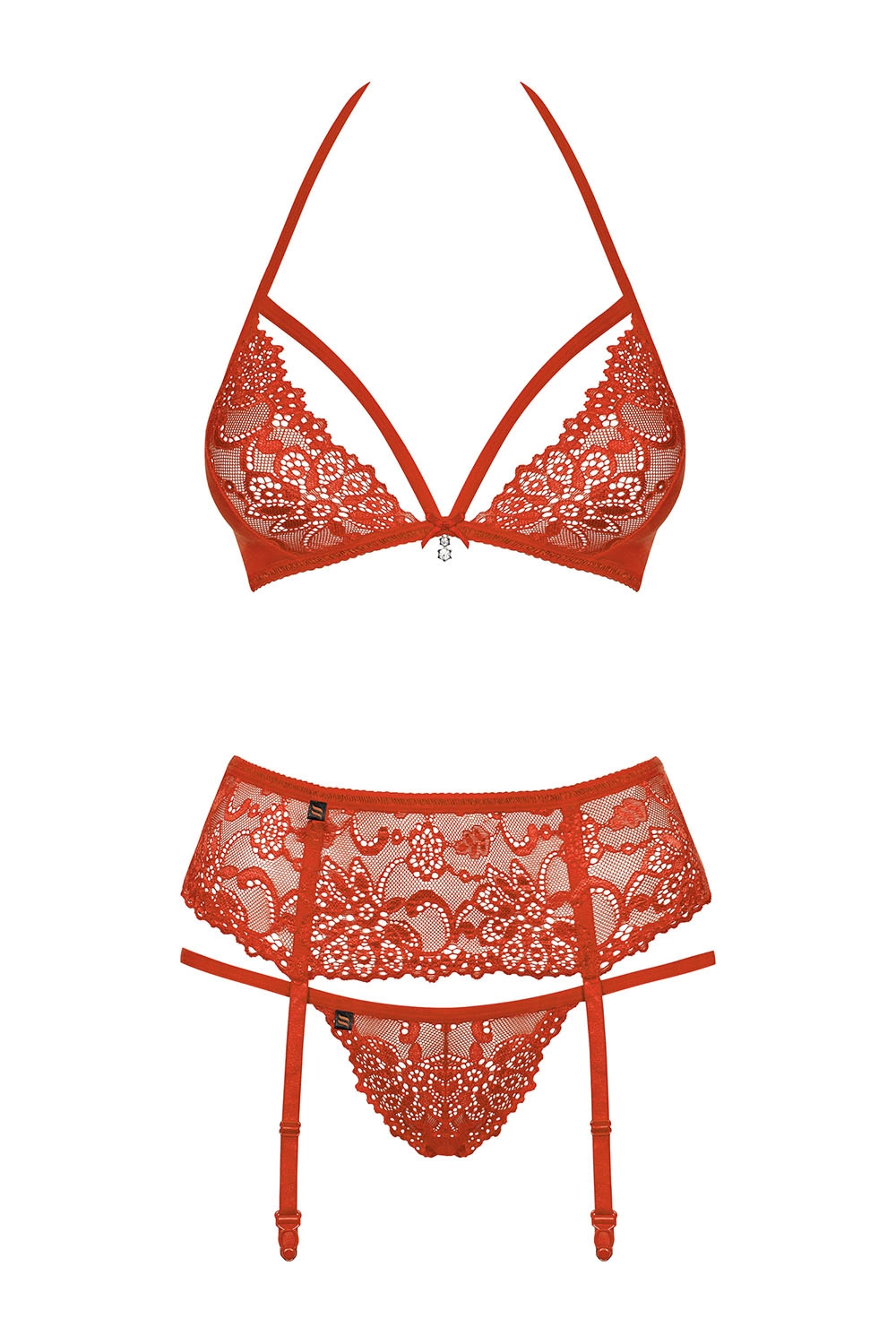 Obsessive 838-SEG-3 Dame Set Soft BH String Strumpfhaltert 3teilig , Rot
