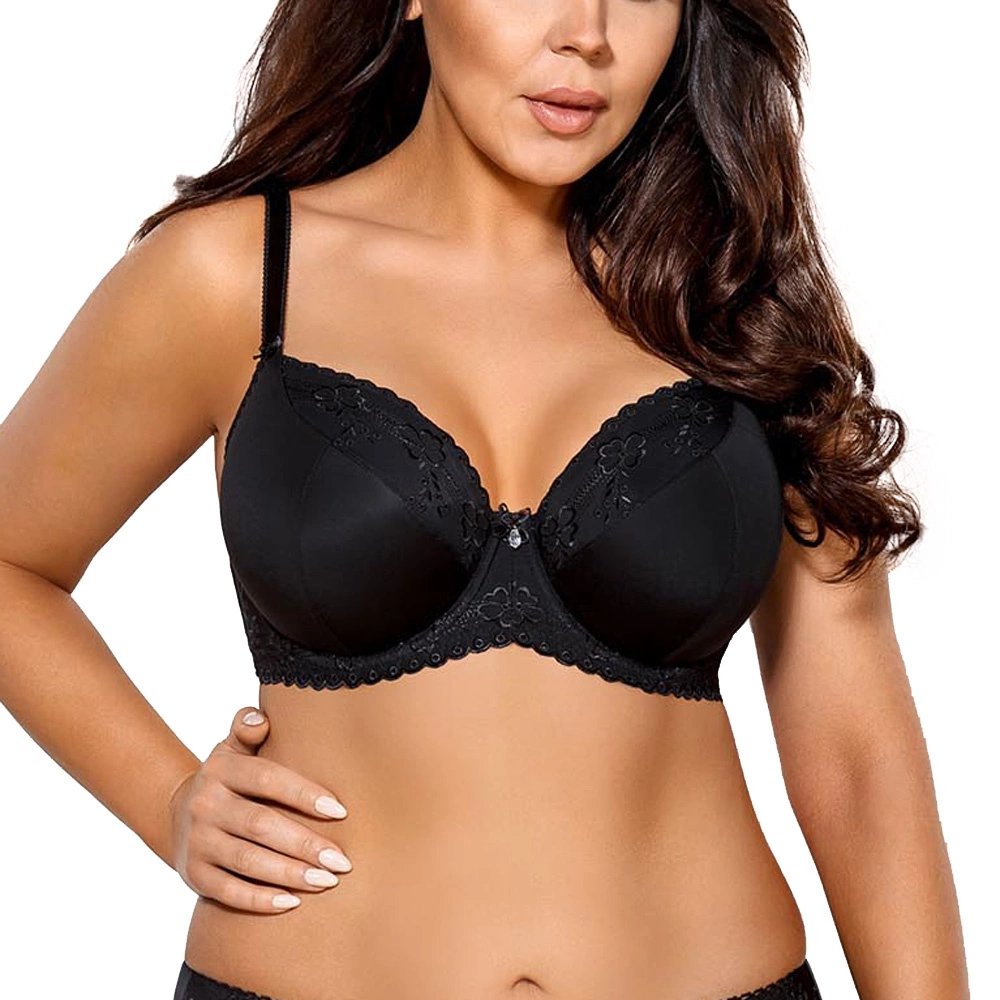 Die Cups des eleganten BHs wurden zum Teil aus glatten Microfaserstoff gefertigt und zum Teil mit wunderschöner Stickerei verziert. Rückenteil dagegen aus einem Lycra. Zwischen der Cups ein kokettes Schleifchen mit schickem Schmuck. Die Seitenteile verstärkt zusätzlich mit vertikalen Seitenstäbchen. Die regulierbaren und abnehmbaren Träger sorgen für die perfekte Passform und idealen Tragekomfort.