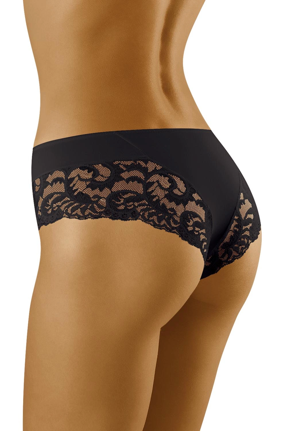Feminine Unterhose von Wolbar wurde aus einem glatten Gewebe und verführerischer Spitze gefertigt. Oberrand und Vorderseite der Hosenbeine mit Laser ausgeschnitten. Shorts gefertigt aus einem Material höchster Qualität. Shorts mit tiefem Bund. Hinterteil ausgeschnitten.