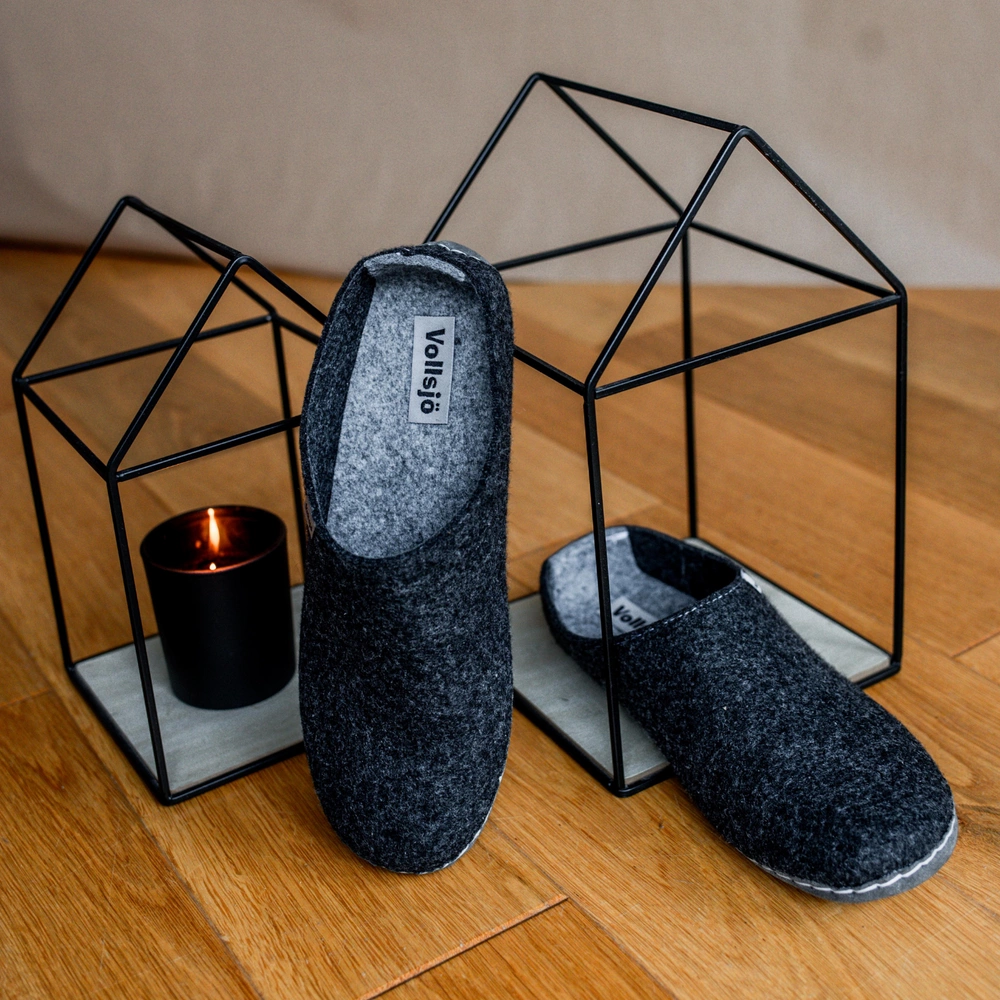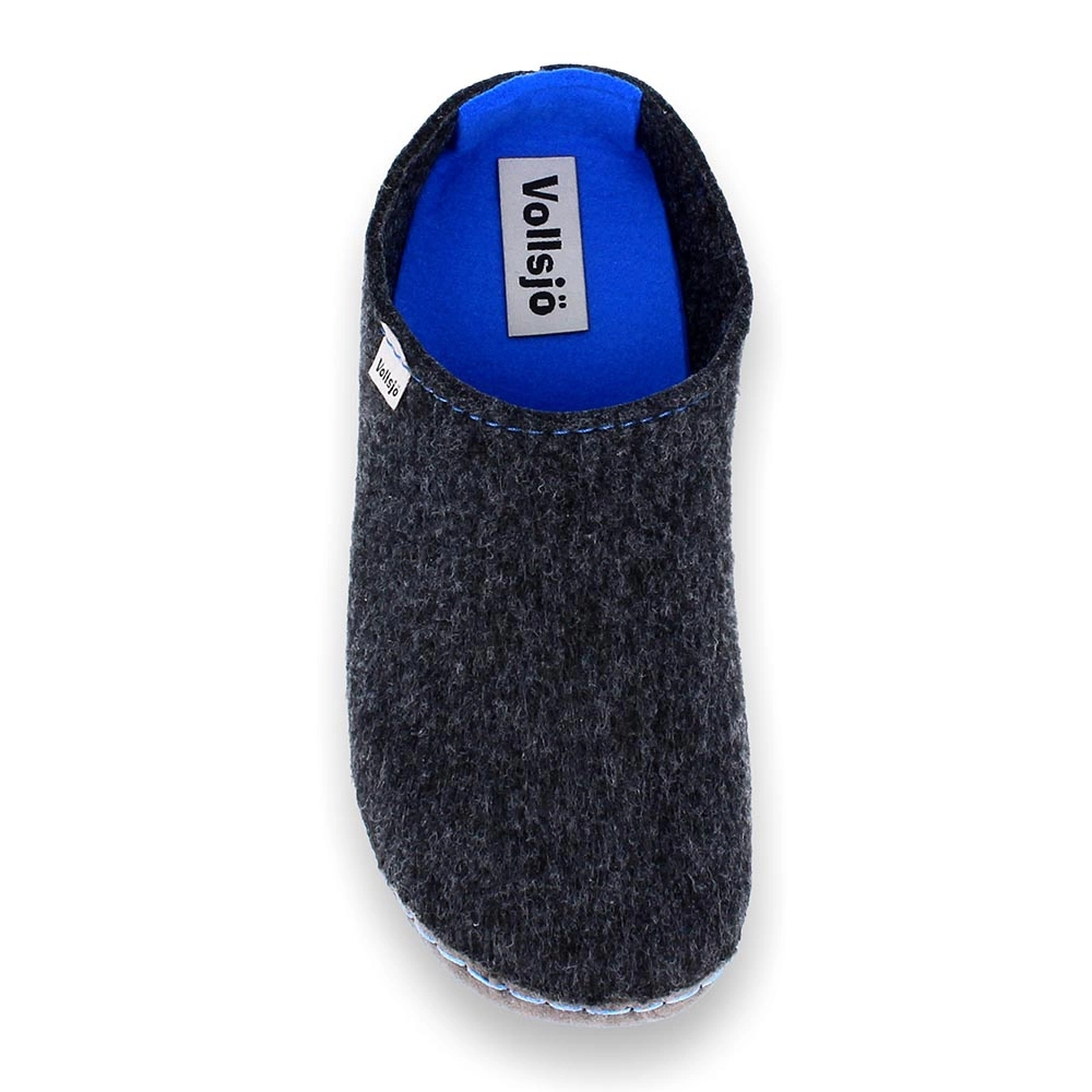 Vollsjö Damen Pantoffeln aus Filz Hausschuhe Dunkelgrau Filzschuhe für Frauen, Modisch und Gemütlich Freizeitschuhe Filzpantoffeln, Heimschuhe, Hergestellt in der EU, dunkelgrau-blau