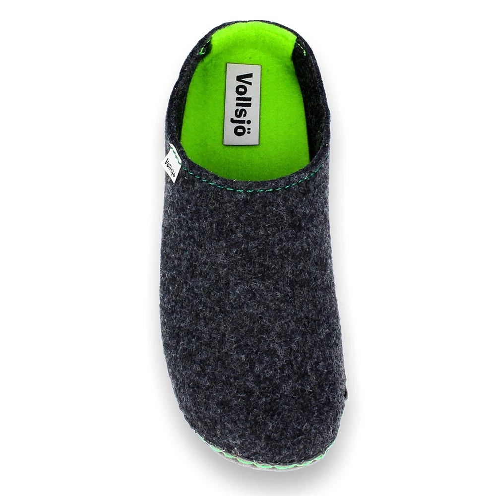 Vollsjö Damen Pantoffeln aus Filz Hausschuhe Dunkelgrau Filzschuhe für Frauen, Modisch und Gemütlich Freizeitschuhe Filzpantoffeln, Heimschuhe, Hergestellt in der EU, dunkelgrau-grün