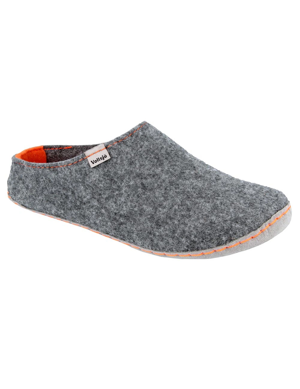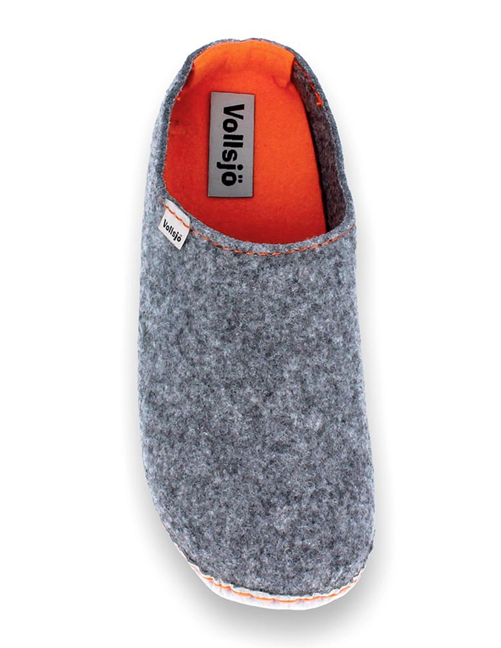 Vollsjö Damen Pantoffeln aus Filz Hausschuhe Hellgrau Filzschuhe für Frauen, Modisch und Gemütlich Freizeitschuhe Filzpantoffeln, Heimschuhe, Hergestellt in der EU, grau-orange