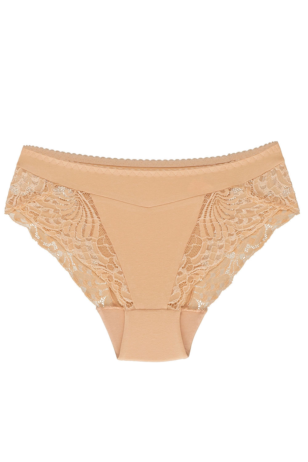 Wolbar Damen Slips Spitze hoher Bund Unterhose WB408, beige