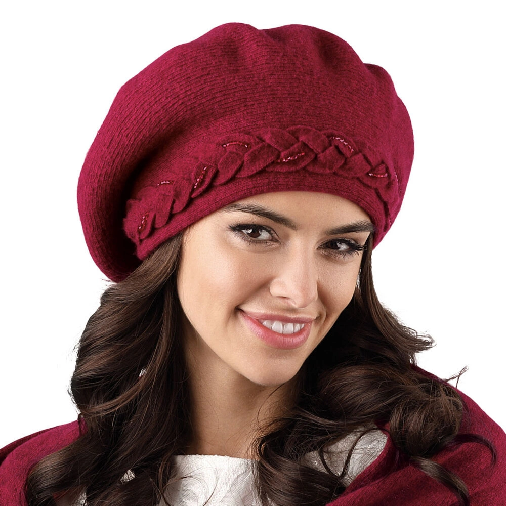 • Die Baskenmütze liegt ideal an dem weiblichen Kopf an.