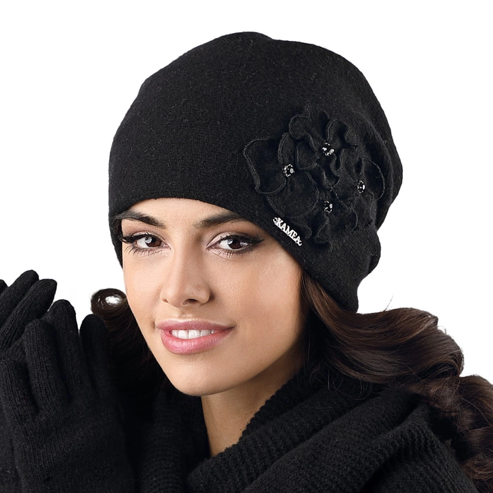Kamea Andora Dame Mütze Herbst Winter Kopfbedeckung elegant, Schwarz