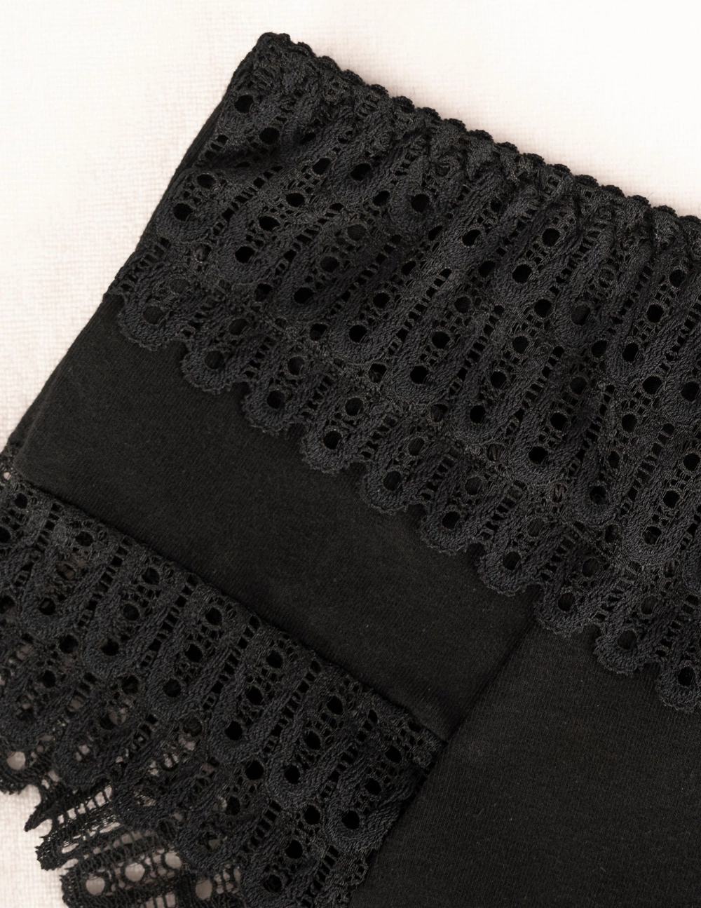 - der Fronteinsatz und die Beinabschlüsse sind mit Ajour-Spitze versehen