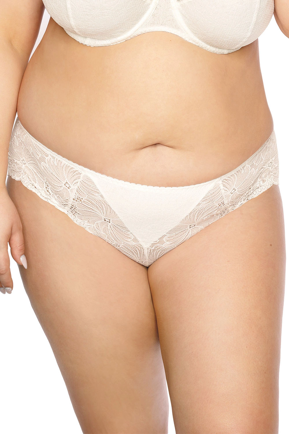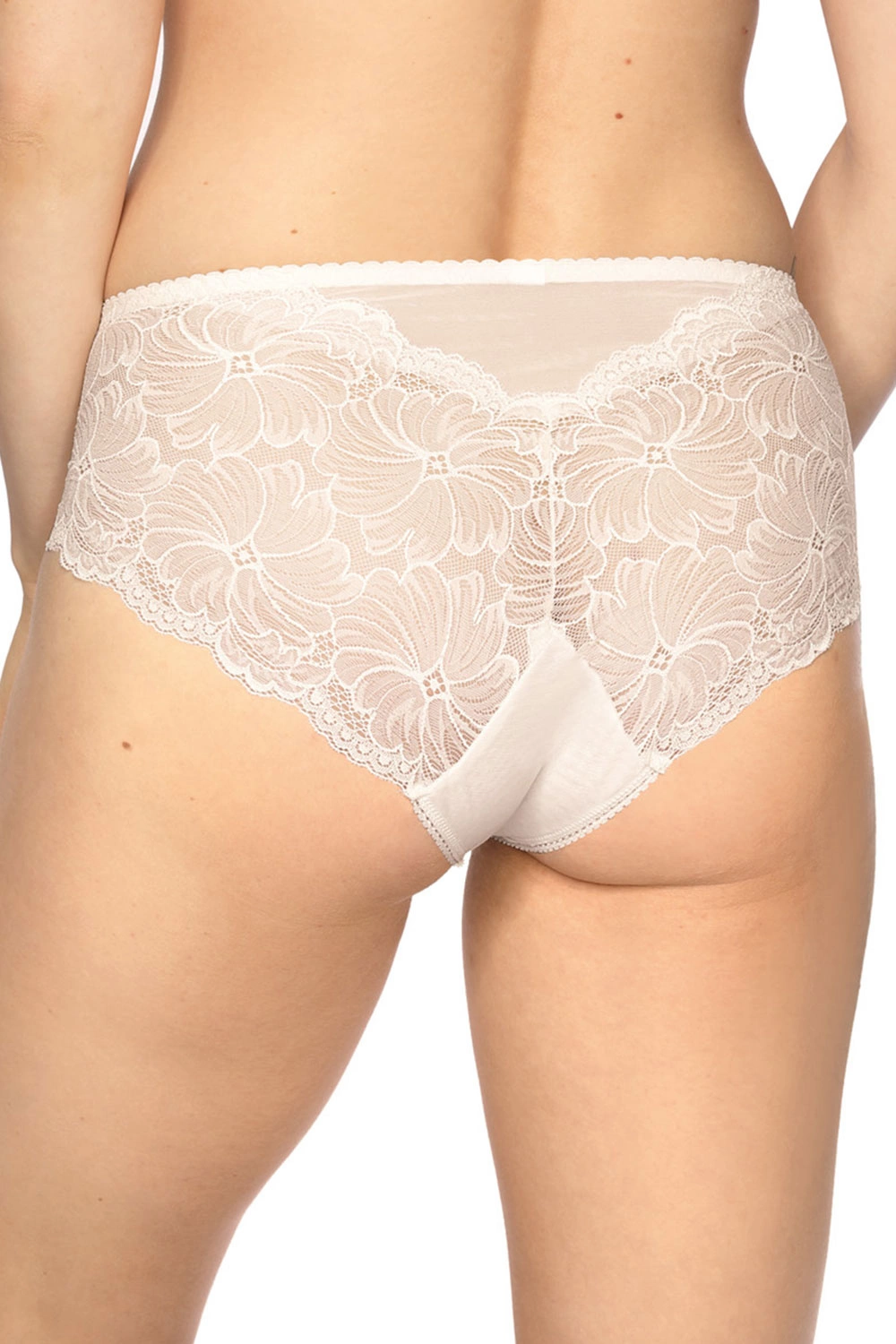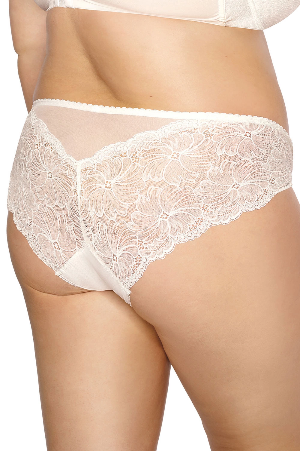 Ein idealer Begleiter für jeden Tag! Der Slip wurde aus schwarzer Ajourspitze, Tüllnetzstoff und weichem Gewebe in Beige gefertigt. Dieses Modell passt sich ideal dem Körper an und sorgt für Komfort und Bequemlichkeit beim Tragen. Ohne Seitennähten. Zum Set empfehlen wir Ihnen Chantal Büstenhalter.