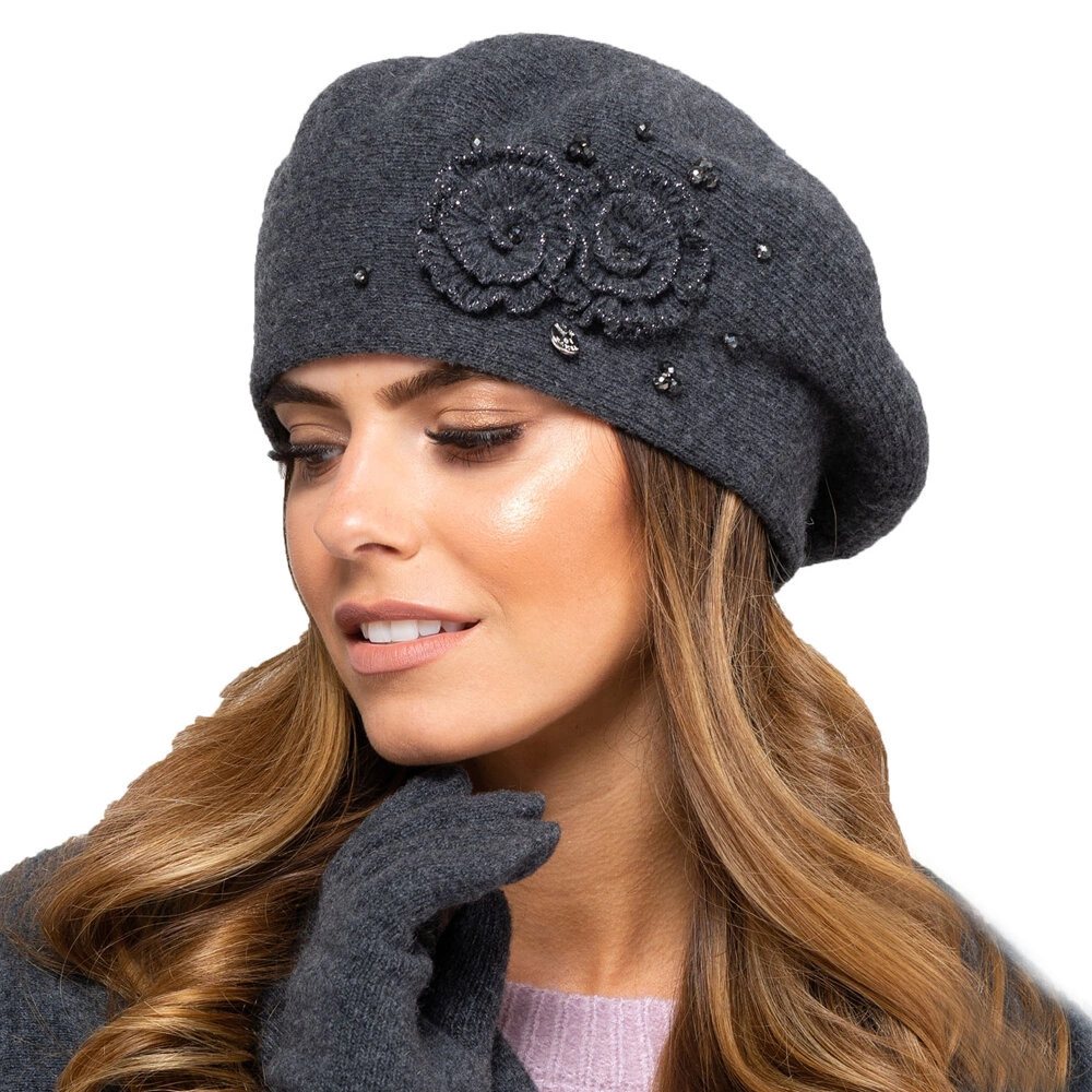Kamea Damen Baskenmütze Kopfbedeckung Herbst Winter Barcelona, Dunkelgrau