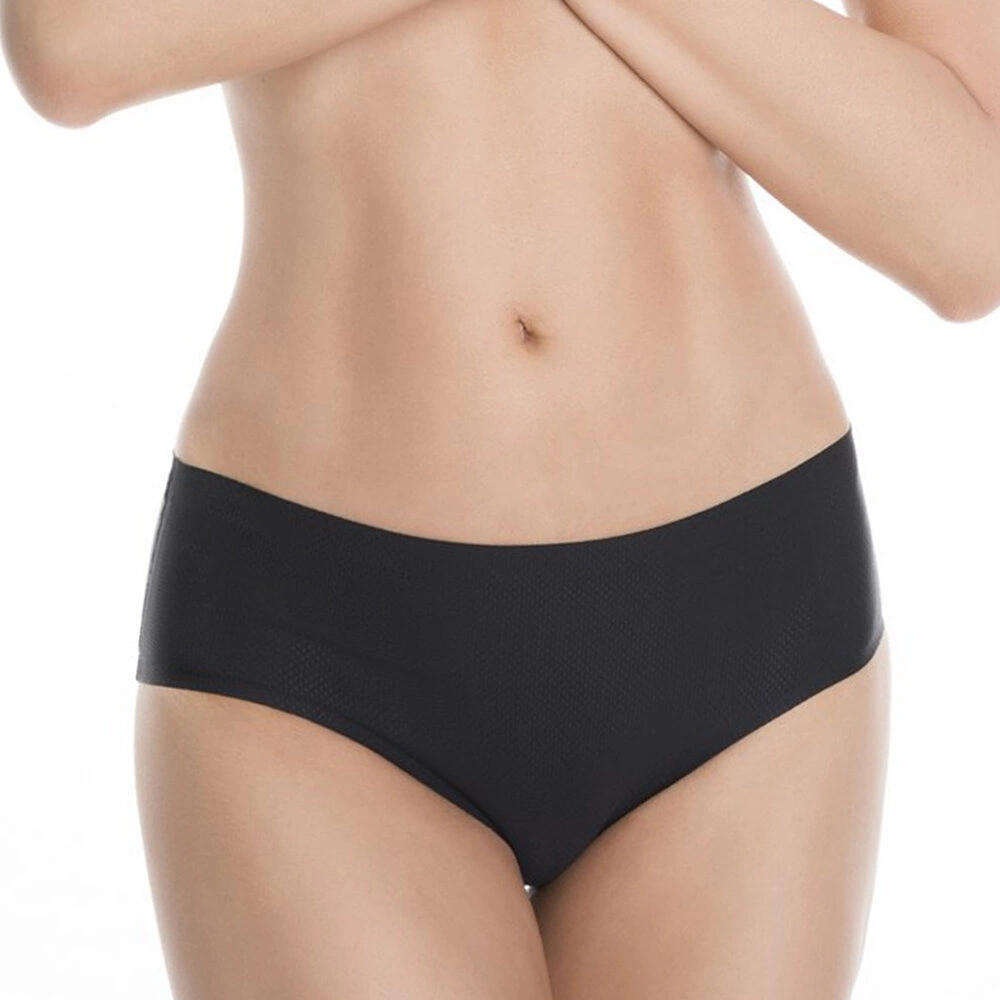 Frauen Slip mit sportlichem Schnitt und klassischer Farbe, aus perforierter Strickware genäht. Perfekt am Körper anliegend, unsichtbar unter der Kleidung dank nahtloser, moderner Spitzentechnologie - INVISIBLE-LINE-Technologie. Sie sind perfekt für den täglichen Gebrauch, da sie extrem leicht und luftig sind.