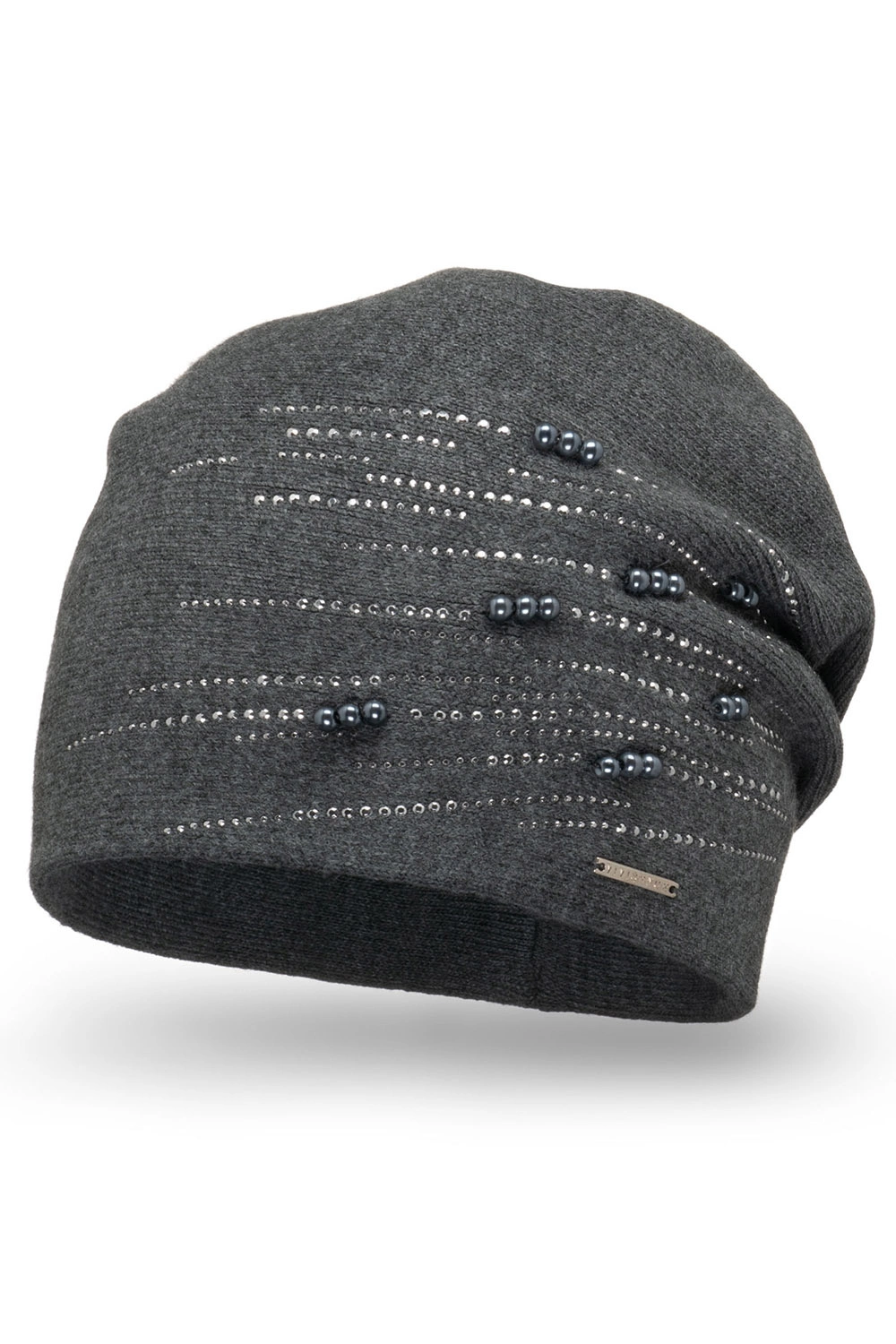 Vivisence Damen Mütze Strick Warm Fleece Zirkonia Perlen Elegant Winter 7012, dunkelgrau