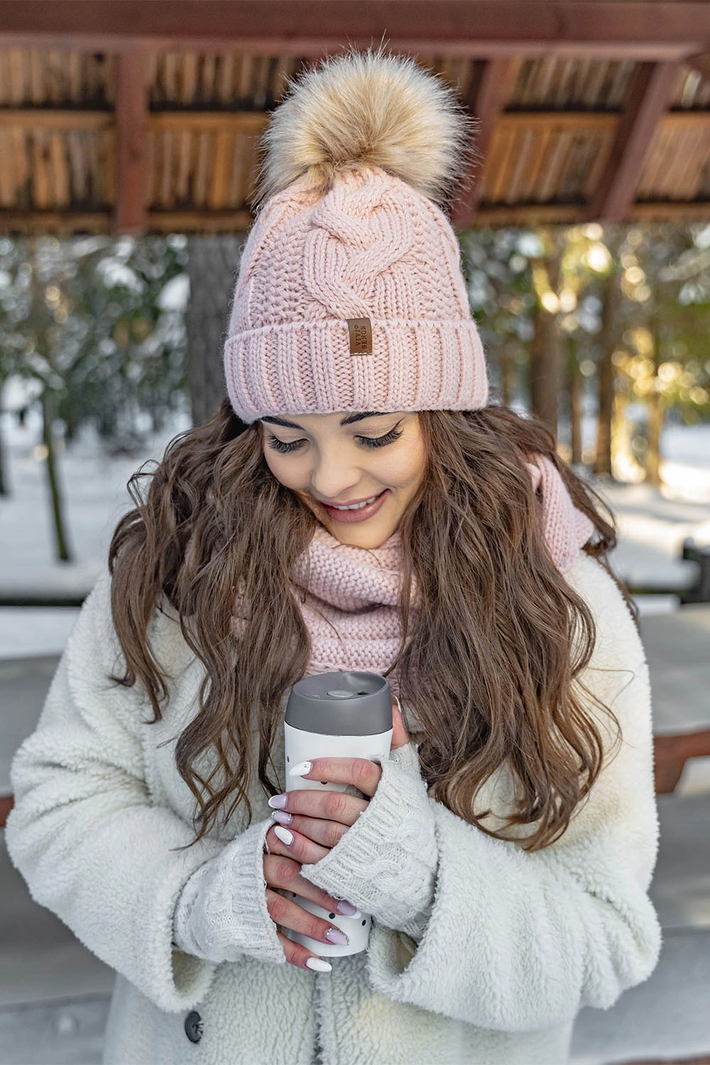 VIVISENCE Wintermütze mit Bommel Damen Warmes Ideal Für Kalte Wintertage 7014, rosa