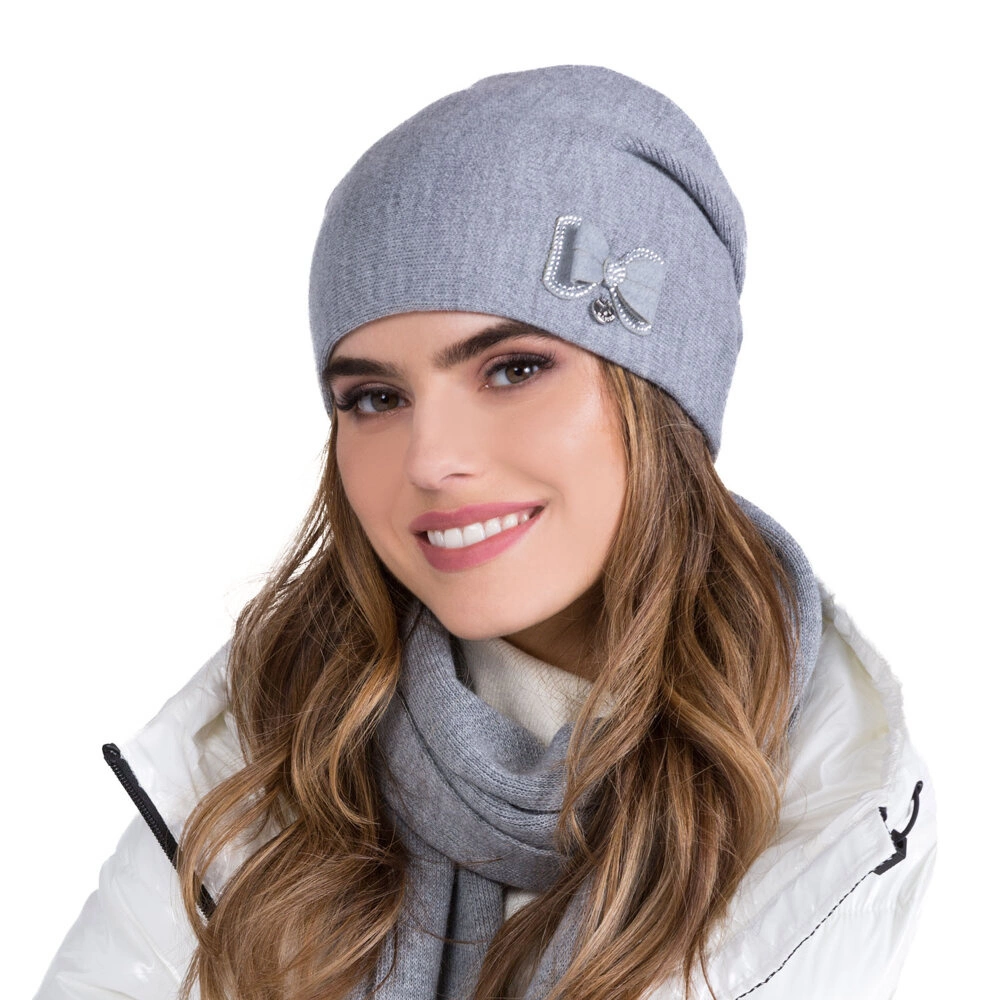 Kamea Dame Wintermütze Kopfbedeckung warm dick Schleife Wika , Grau