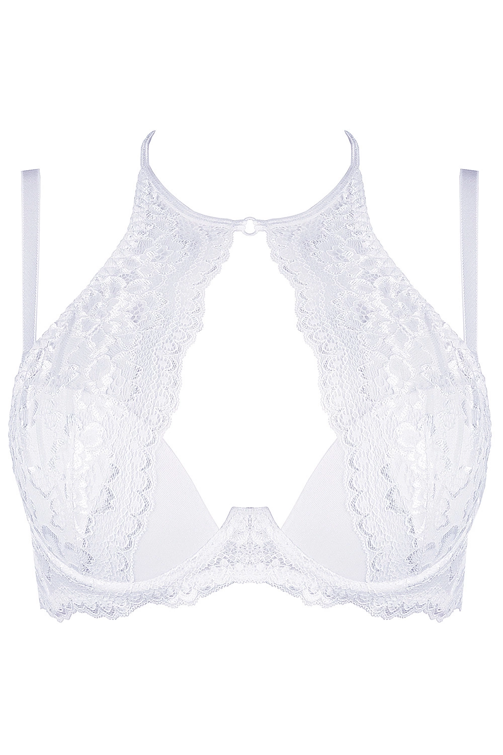 Axami Dame Bügel BH Spitze geblümt Träger Neckholder V-9541, Weiß