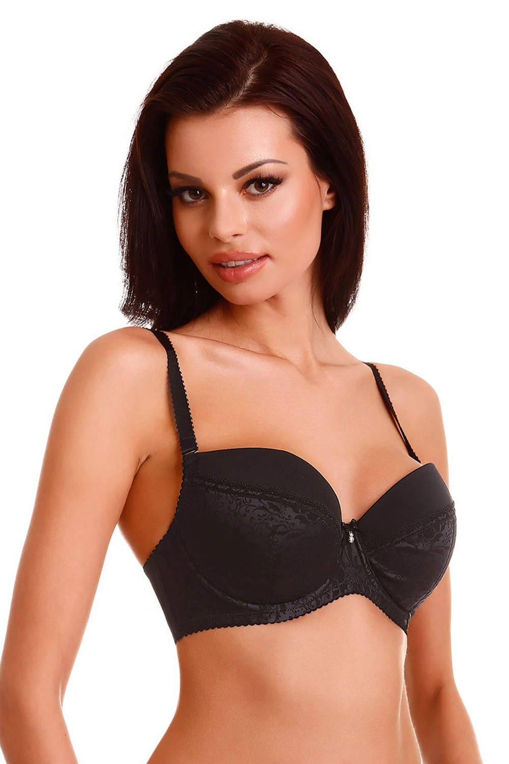 Das Modell verfügt über verstellbare, abnehmbare Träger, mit Ausnahme der letzten Größengruppe - an den breitesten Trägern sind sie dauerhaft eingenäht. Rückenverschluss: Haken. Eine Schleife mit Anhäger zwischen den Schalen.