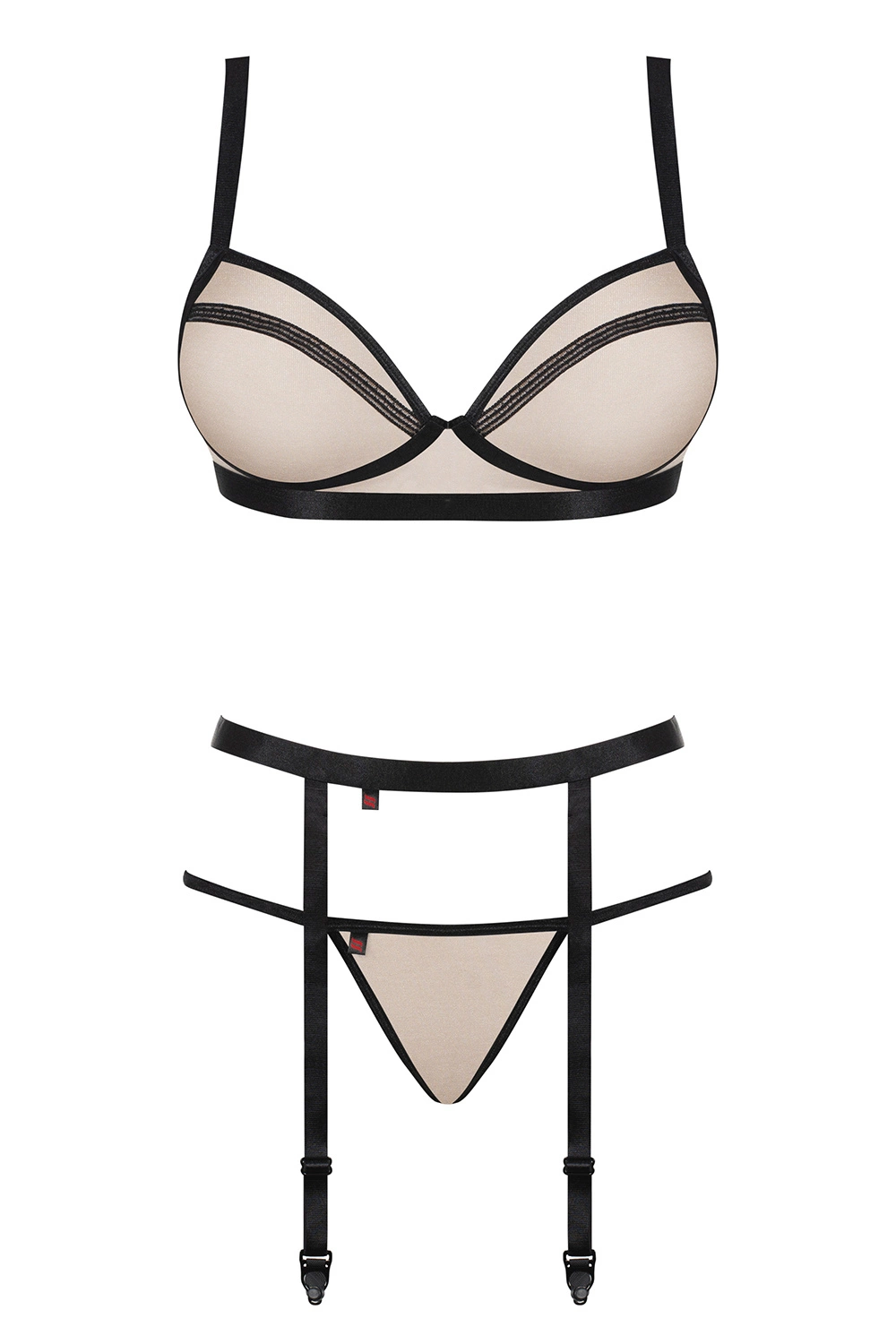 Obsessive Dame 3-teiliger Set  BH Soft Cups Strings Träger Nudelia Noir,