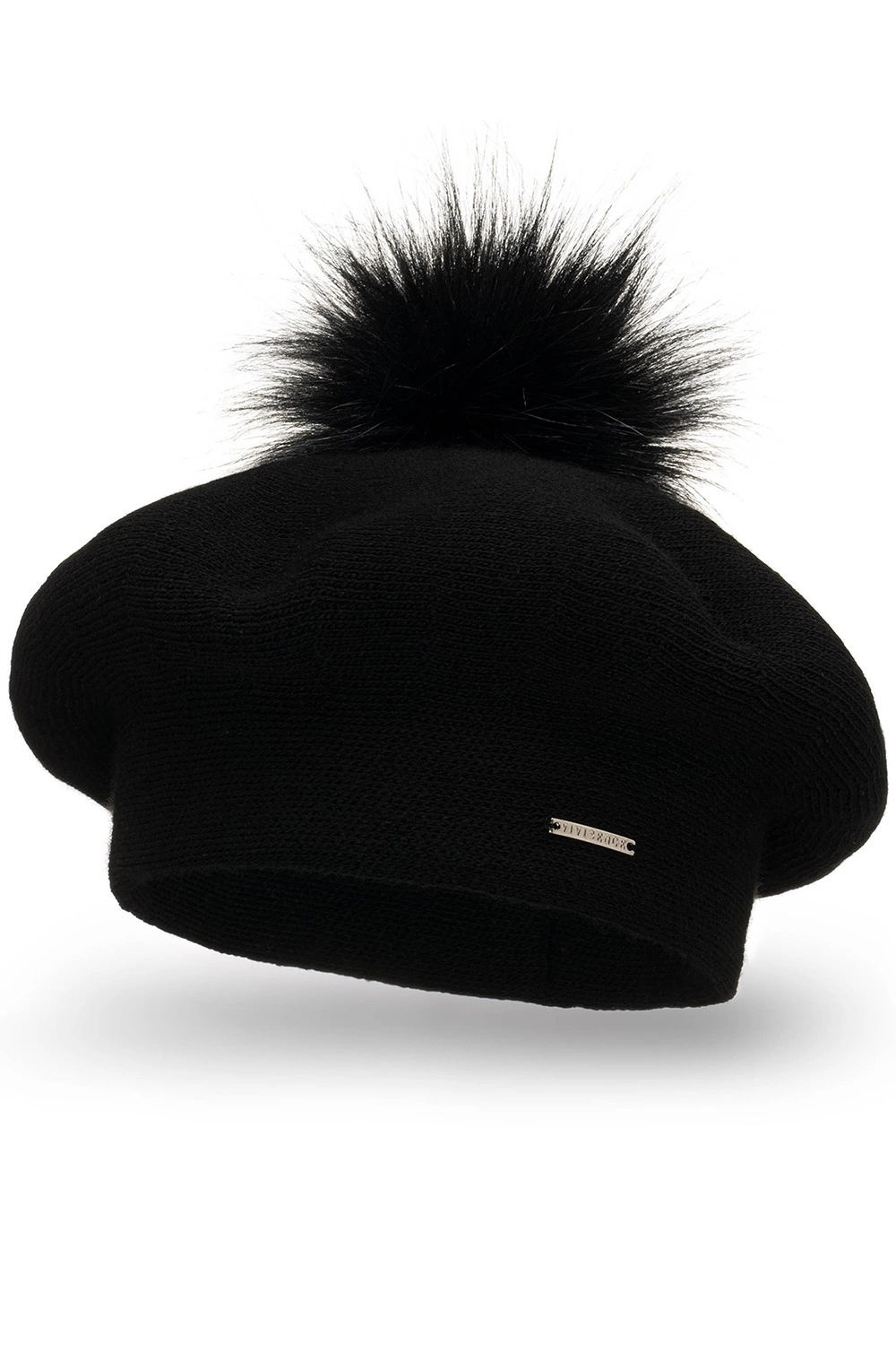 Vivisence Damen Baskenmütze Warm und Gemütlich Kälteschutz Komfort Bommel 7035, schwarz