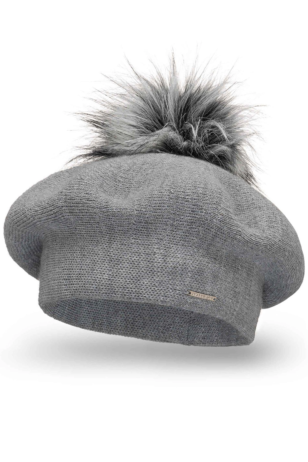 Vivisence Damen Baskenmütze Warm und Gemütlich Kälteschutz Komfort Bommel 7035, grau