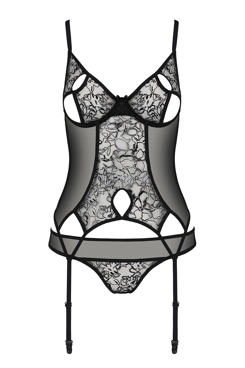 - dekorative Spitzenverzierung und sexy Ausschnitte vorne