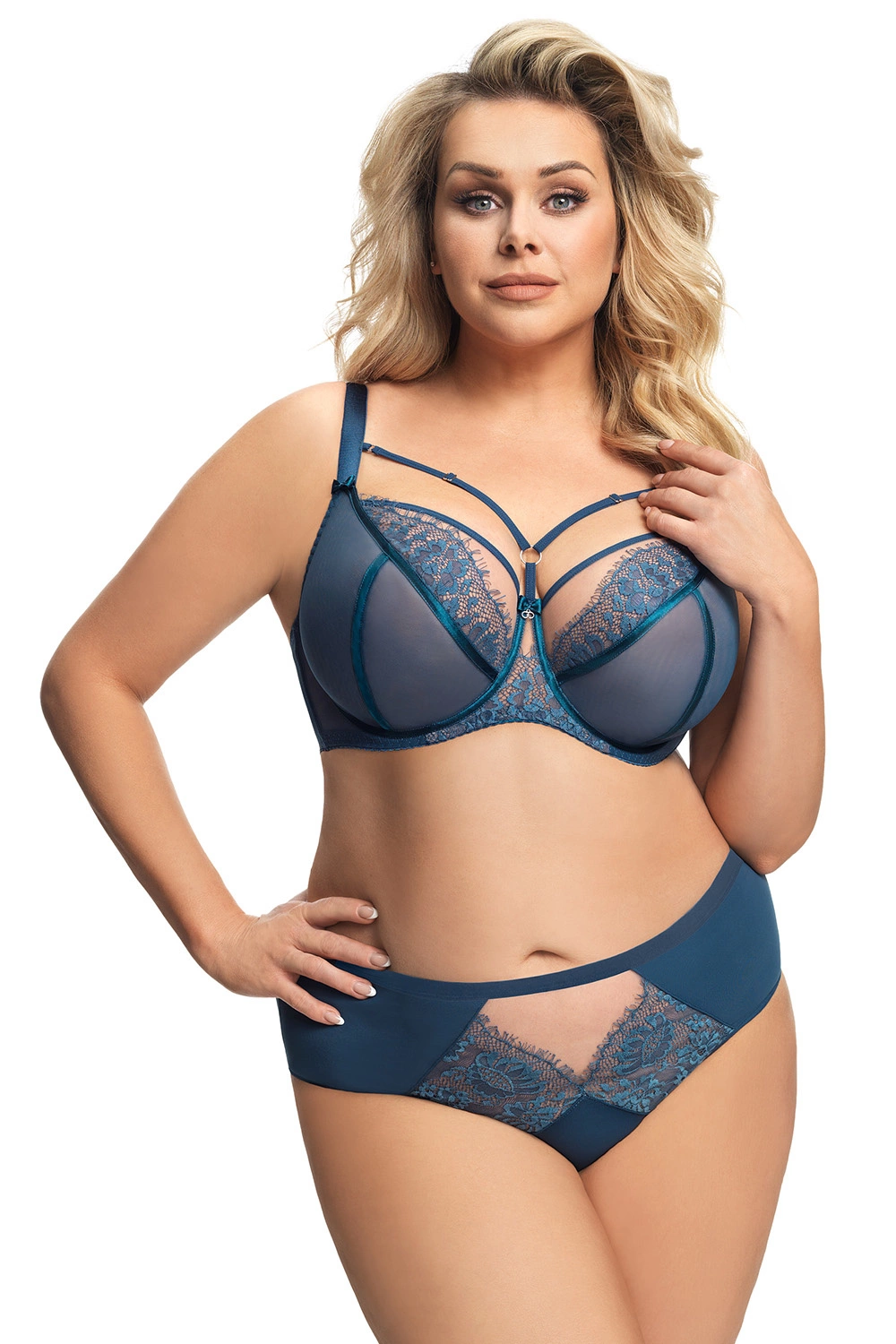 Gorsenia Dame Slip Hoher Bund Klassisch Spitze Tüll Elegant K665 Paradise, Blau