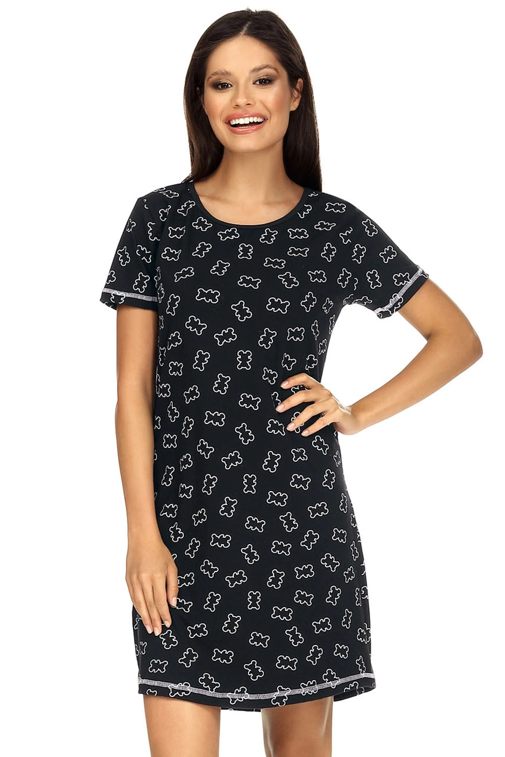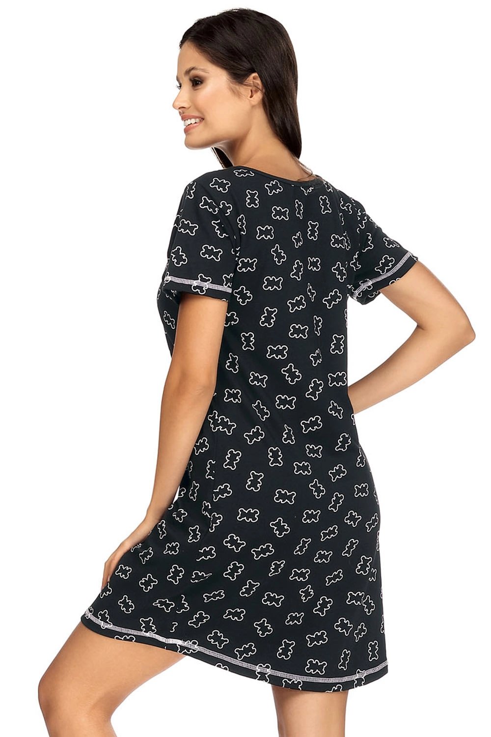Lorin Dame Nachthemd Klassisch Gemustert Nachtwäsche zum Schlafen P-1579, Schwarz