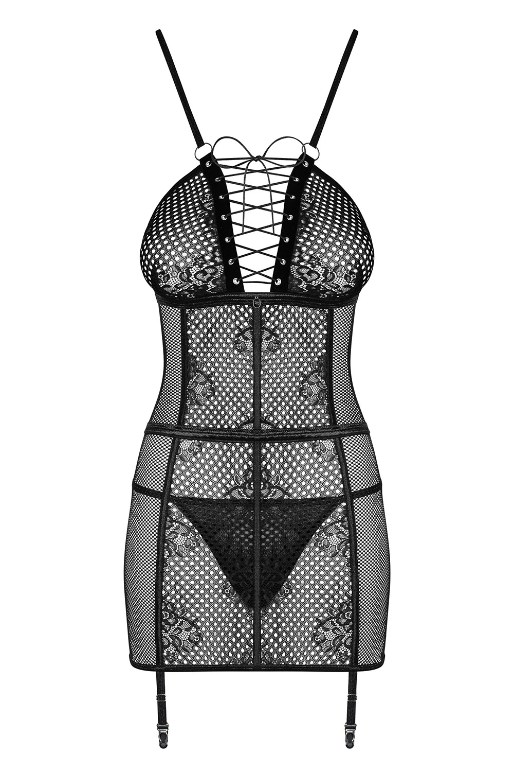 Verführerischer Set aus Netz und zarter Spitze gefertigt. Dieses Nachtkleid ist perfekt für Frauen, die sowohl Schick als auch Sexappeal schätzen.