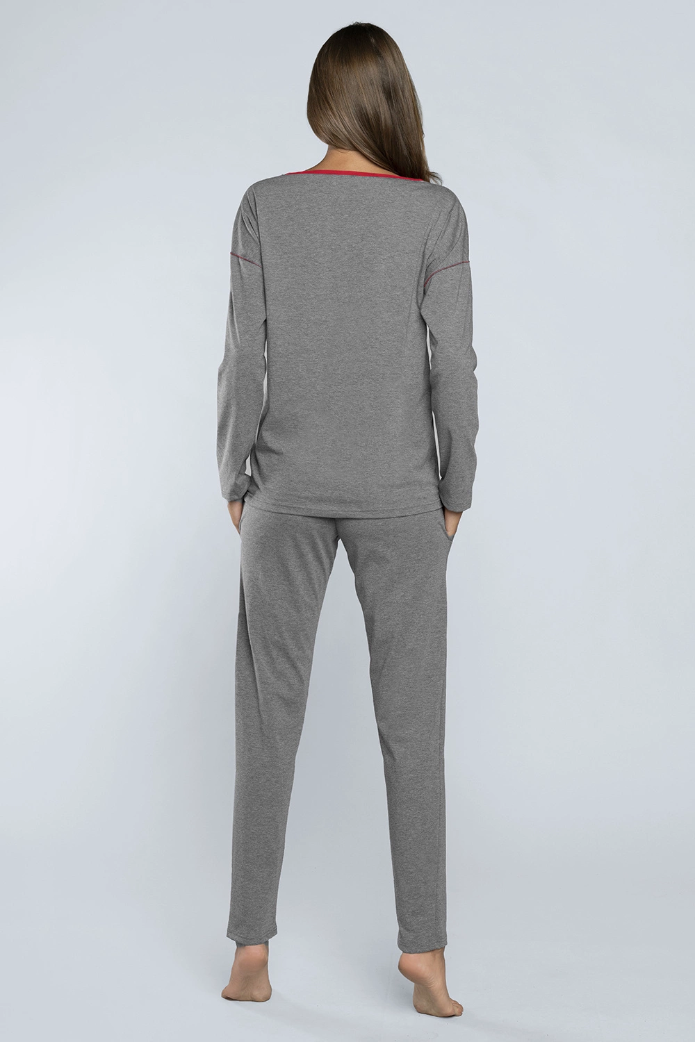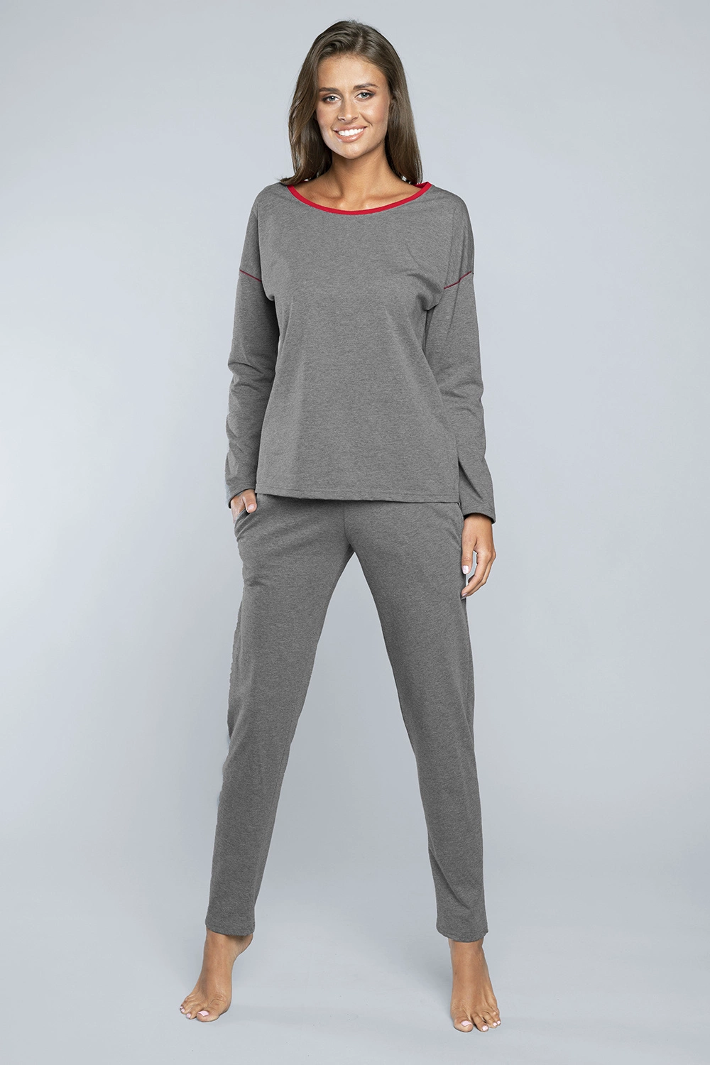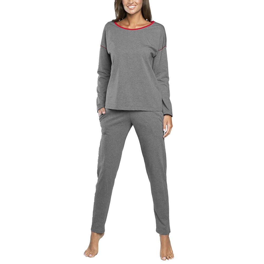 Italian Fashion Dame Schlafanzug Zweitelig Pyjama Set Baumwolle Akcent, Grau