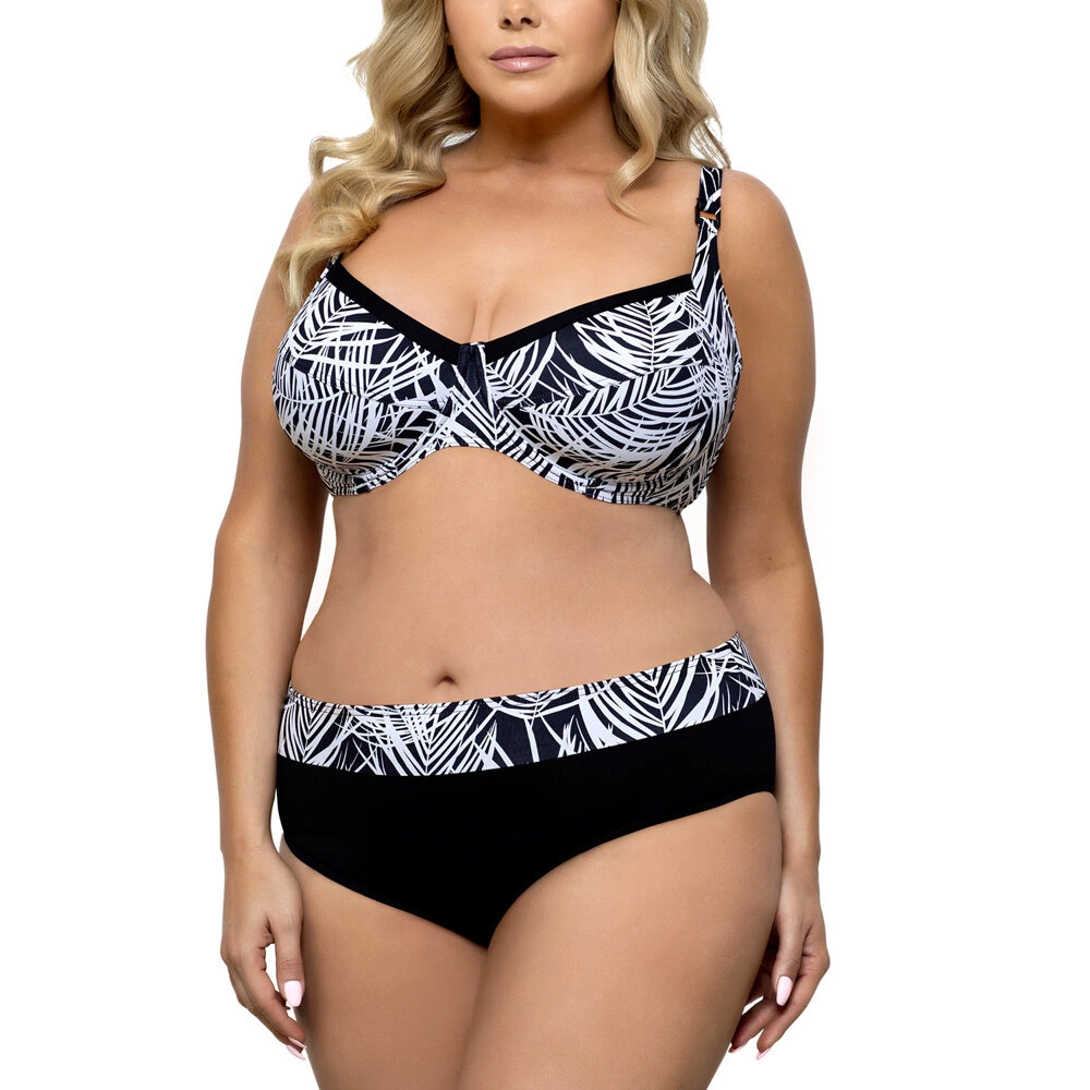 Lorin Dame Bikini Set Zweiteilig Gemustert Soft Cups Slip Bademode L3089/1, Schwarz