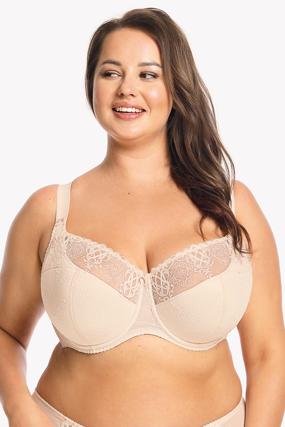 Gaia Dame halbversteifter BH Netz Stickerei Schalen Träger 1107M Elena Maxi, Beige