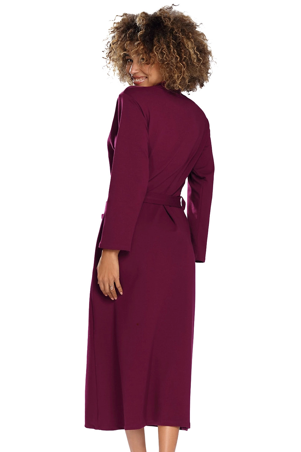 Dkaren Dame Morgenmantel Langarm Musterlos Kurz Locker Nachtwäsche Melissa, Weinrot