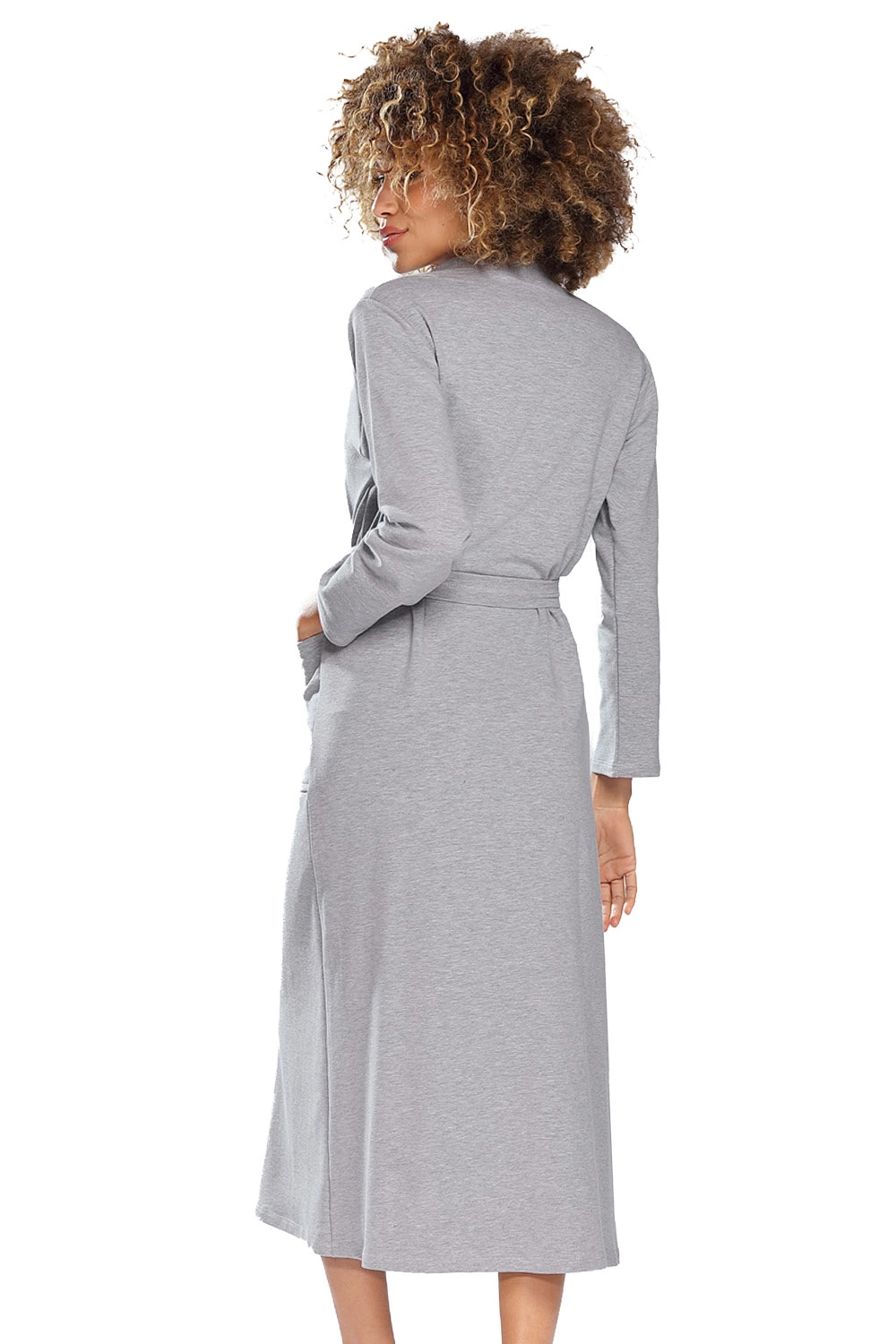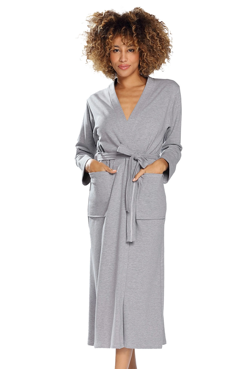 Dkaren Dame Morgenmantel Langarm Musterlos Kurz Locker Nachtwäsche Melissa, Grau