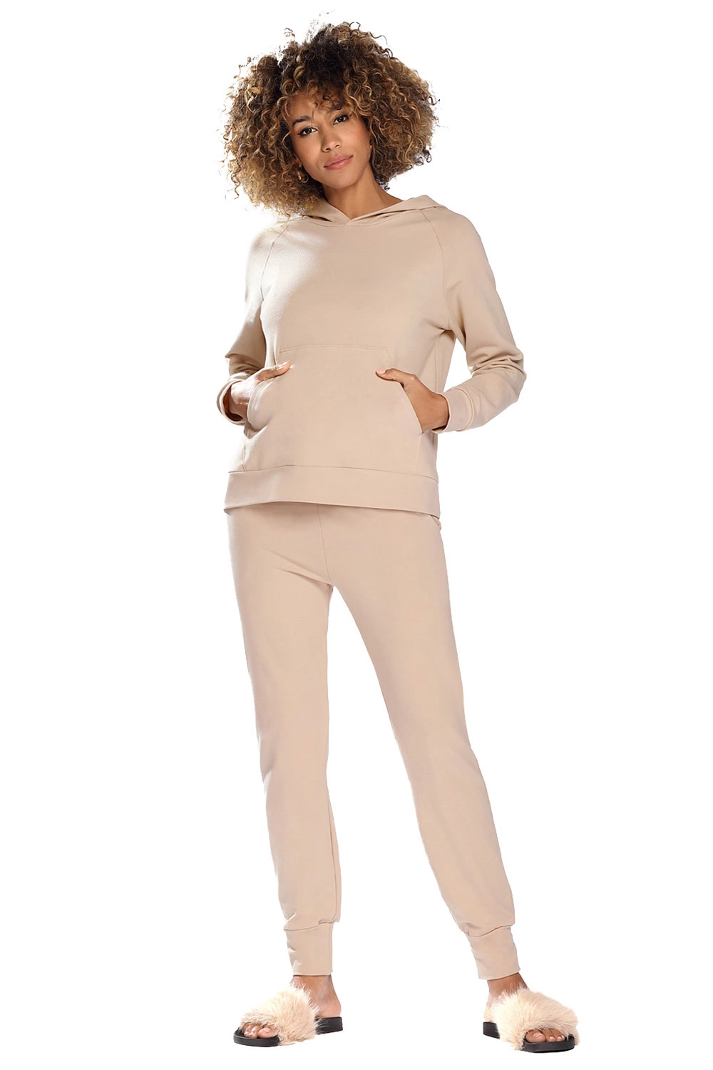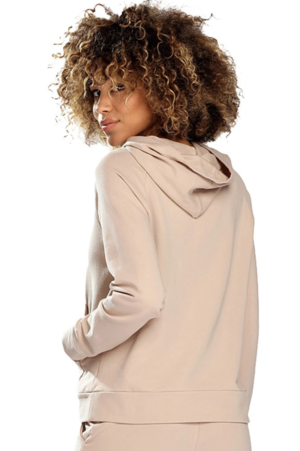 • Das Sweatshirt liegt locker an dem weiblichen Körper an, idealer Tragekomfort.