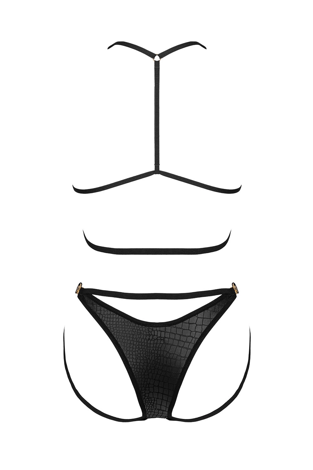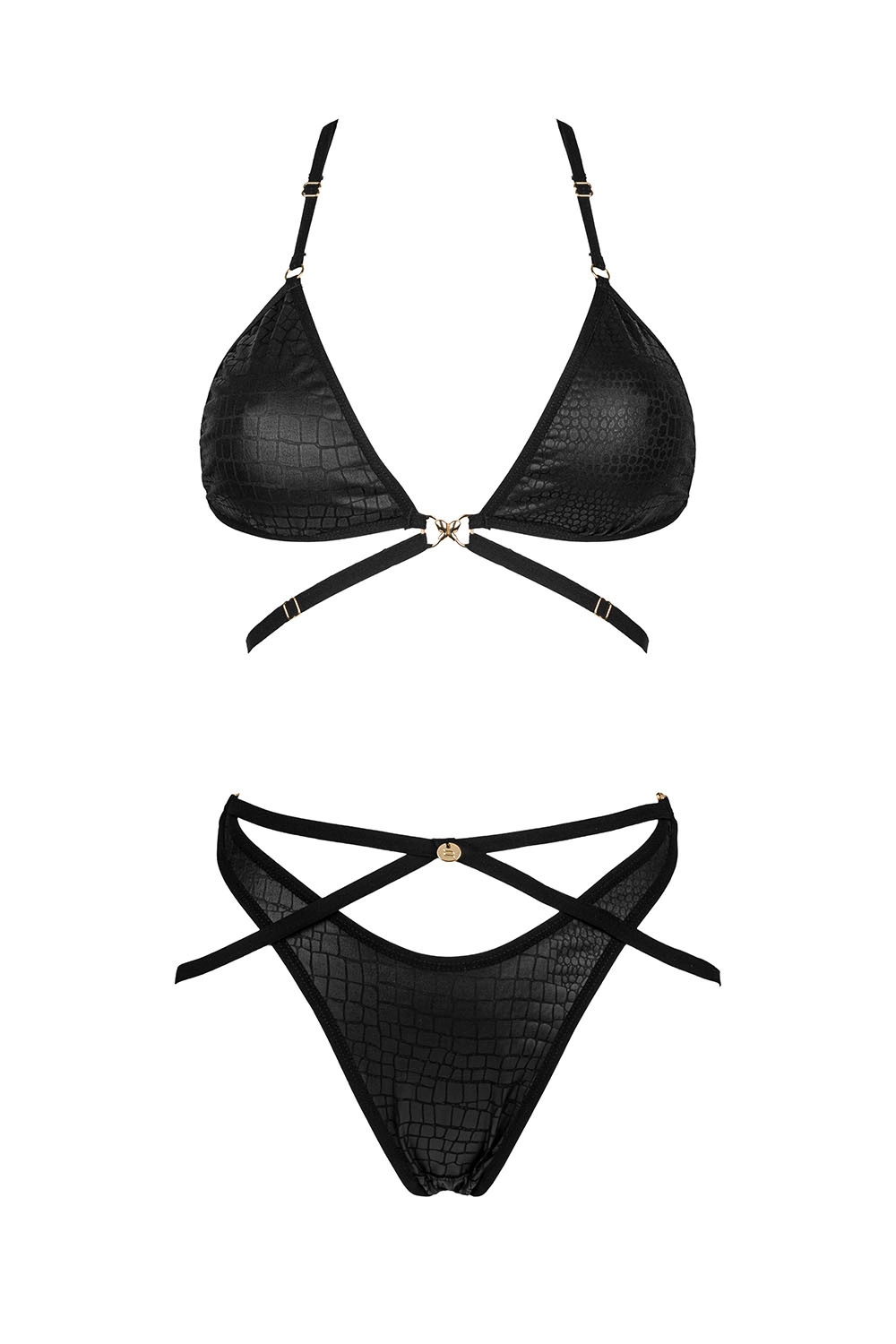 Obsessive Dame Reizwäsche Set Zweiteilig Sinnlich Streifchen Sexy Cobra Nive, Schwarz