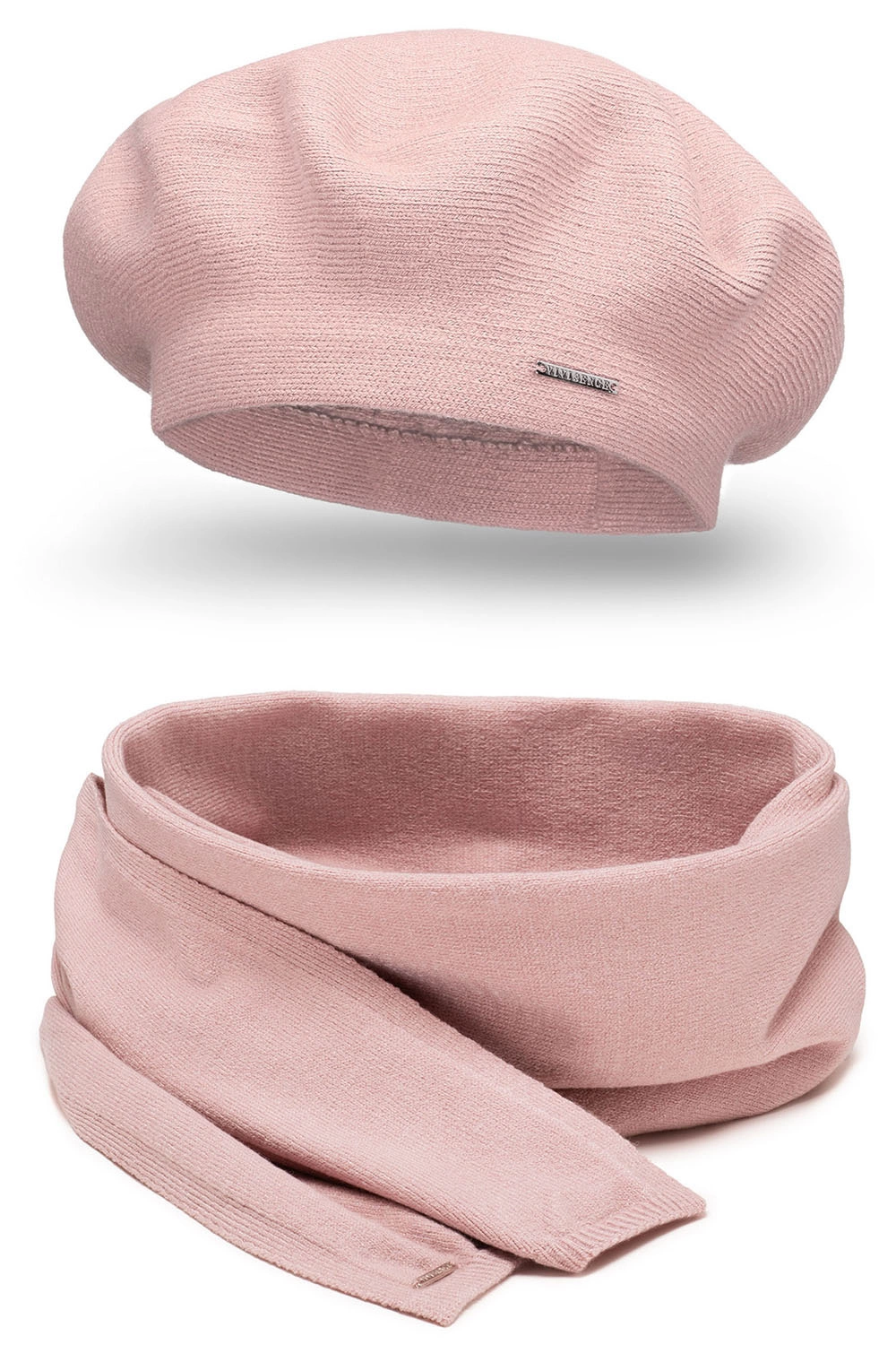 Eleganter Set für Damen: Baskenmütze und Schal.