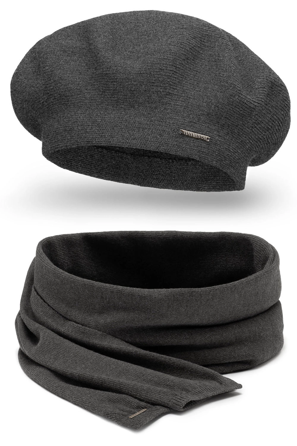 Eleganter Set für Damen: Baskenmütze und Schal.