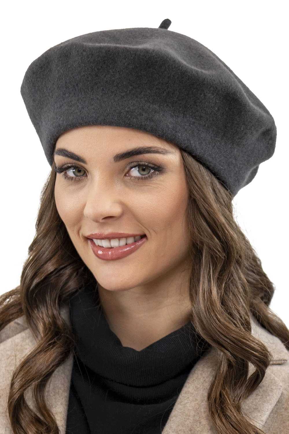VIVISENCE Winter Baskenmütze Aus Wolle für Damen Ideal für Wintertage 7073, dunkelgrau