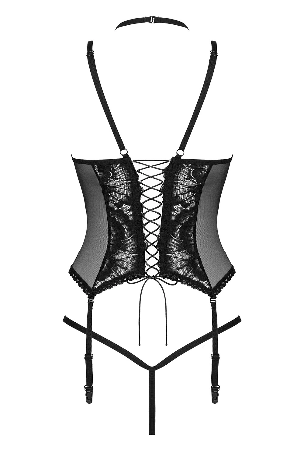 Obsessive Dame Korsett Reizwäsche Set Zweiteilig Spitze Netz Sinnlich String Alessya, Schwarz