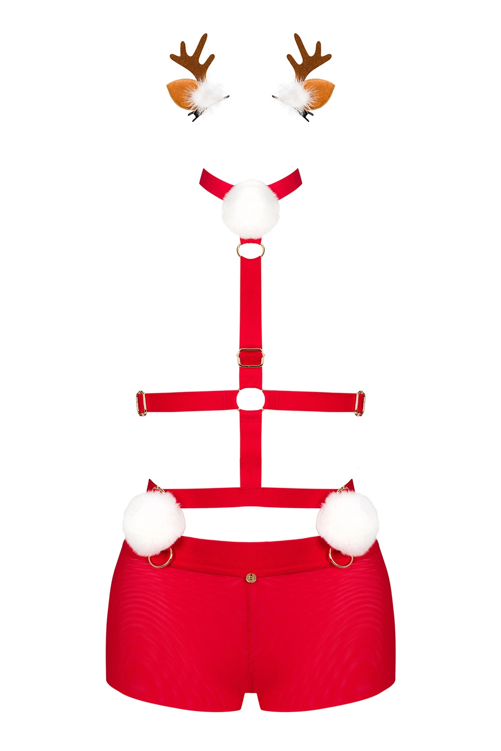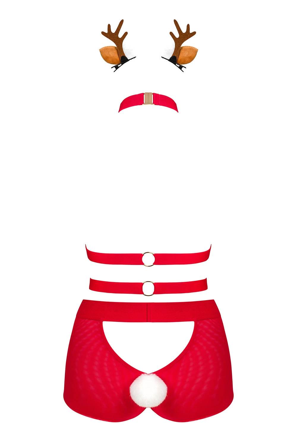 Obsessive Dame Reizwäsche Set Dreiteilig Rentier Sexy Bommel Weihnachten Sinnlich Ms Reindy , Rot