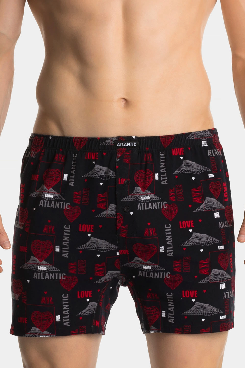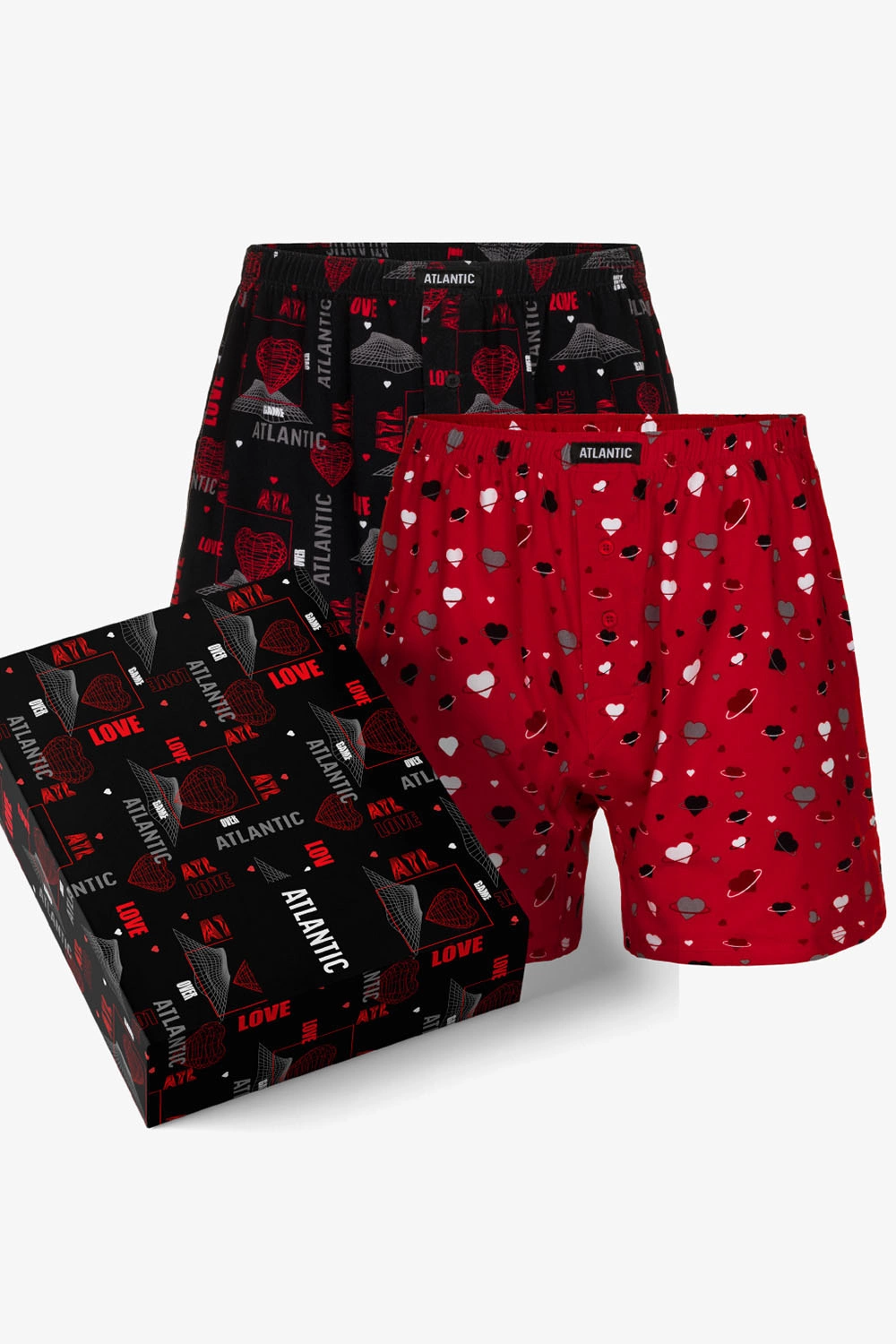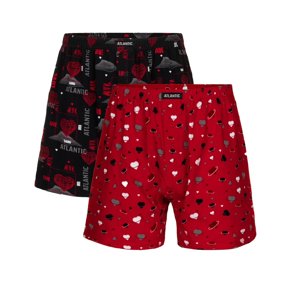 Atlantic Herren Boxenshorts 2er Pack Bund Klassisch Unterwäsche Unterhose 2GMB-001 , Schwarz-Rot