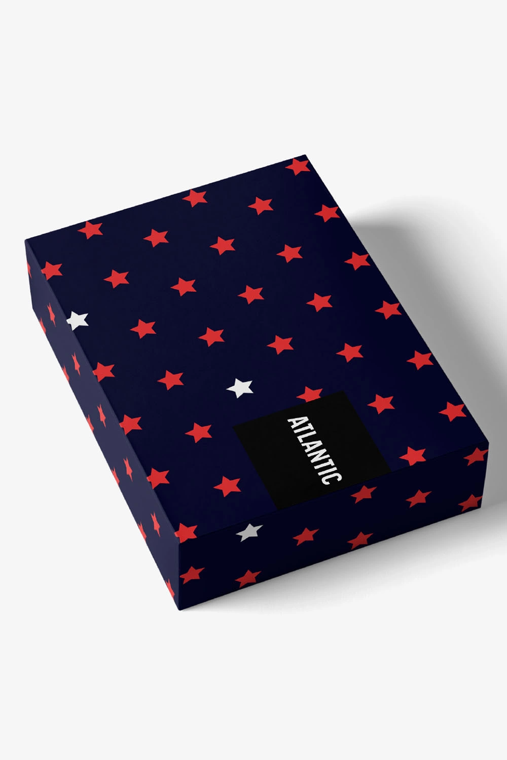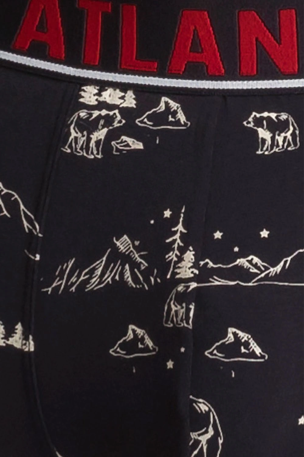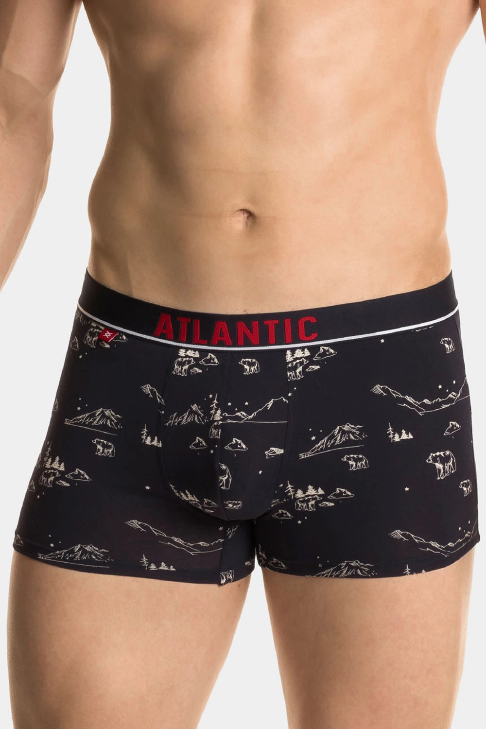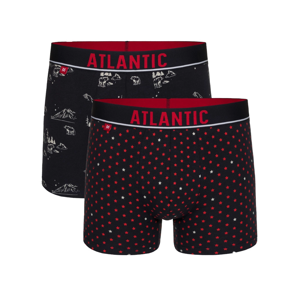 Passende, enge Herren-Boxershorts im 2er-Pack. Die ersten sind mit winterlichen Mustern: Weihnachtsbäume, Berge oder Eisbären, die zweiten sind mit Sternen vershehen (Achtung! leuchtet im Dunkeln!). Boxershorts haben einen sportlichen Charakter – sie haben normaler Bund und lange, nicht abrollende Hosenbeine. Auffallend sind auch die profilierenden Schnitte sowohl vorne als auch hinten, dank denen sich die Unterwäsche perfekt der Figur anpasst und perfekt an diese anschmiegt. Die Taille der Boxershorts ist mit einem breiten, weichen und nicht komprimierenden Gummiband beendet, das mit ATLANTIC-Schriftzug verziert ist. Boxershorts bestehen aus einem hochwertigen Stoff, der eine Kombination aus zarter Baumwolle und dehnbarem Elastan ist. Das Material ist beständig gegen hohe Temperaturen und mechanische Einwirkungen, es hat auch die Fähigkeit, Wasser aufzunehmen, was das Schwitzen des Körpers verhindert. Darüber hinaus verursacht es keine Allergien und verursacht keine Hautallergien.