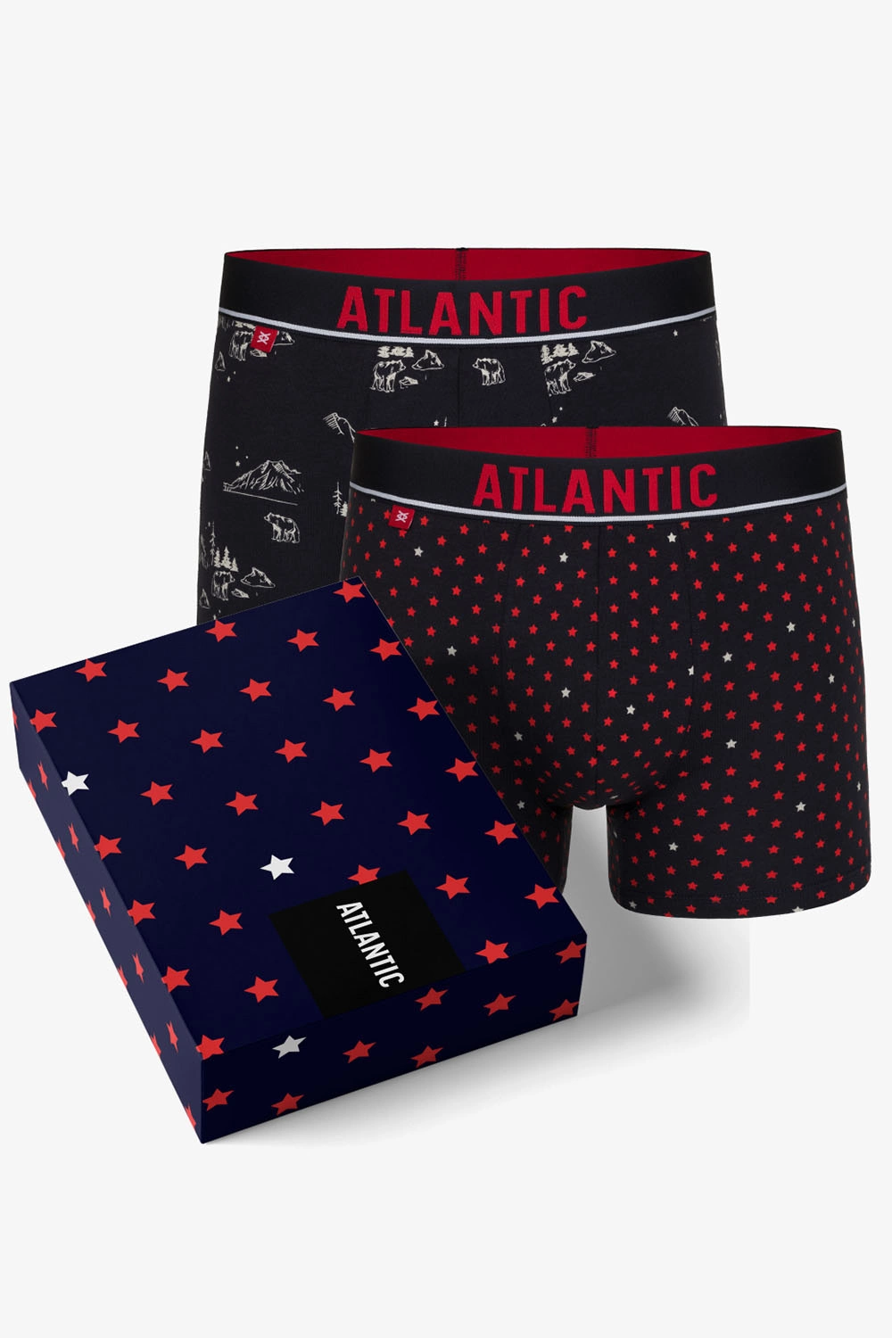 Atlantic Herren Boxenshorts 2er Pack Bund Klassisch Unterwäsche Unterhose Gemustert 2GMH-015,