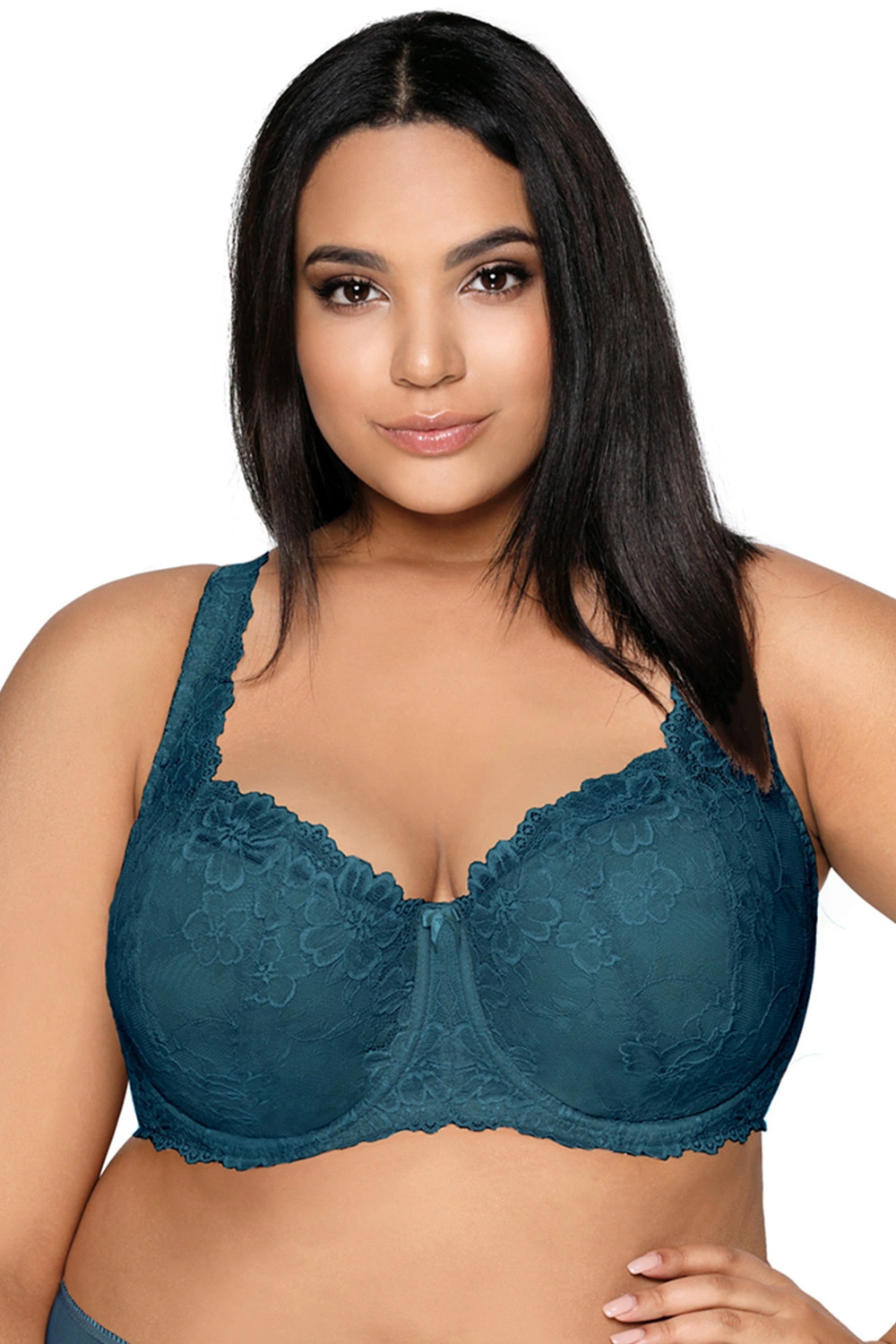 Mat Dame Bügel BH Gepolsterte Cups Spitze Blumenmuster Klassisch Komfortabel Elegant 053/22 Carmela Big, topasblau
