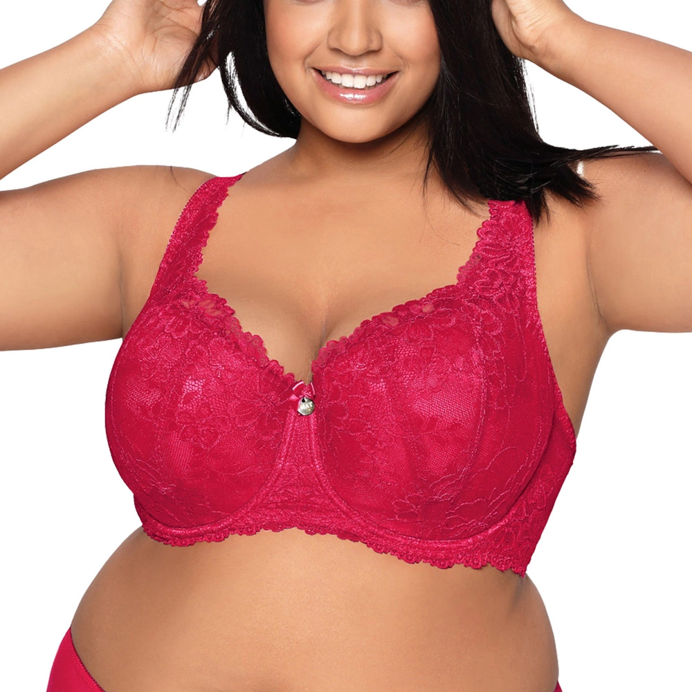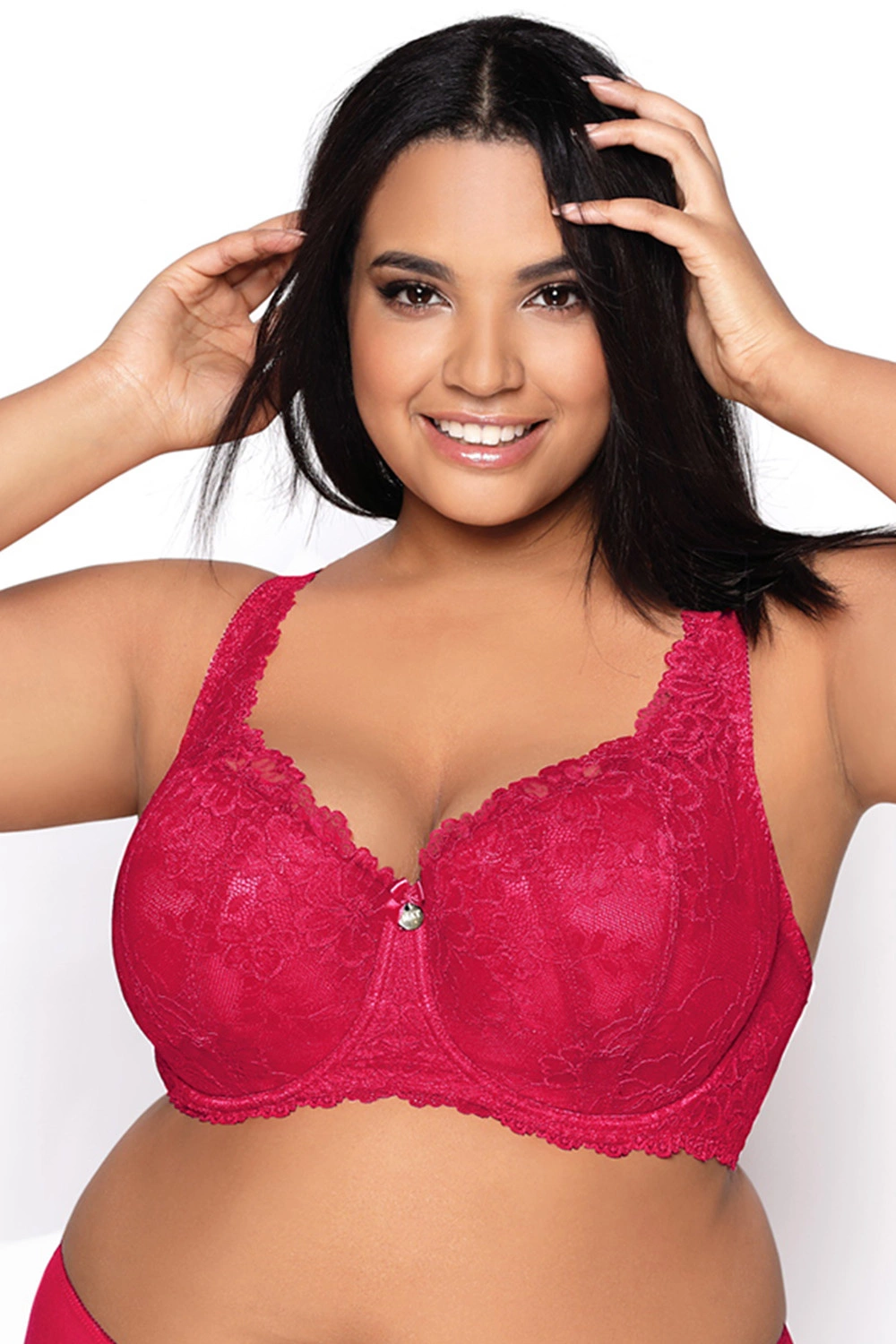 Mat Dame Bügel BH Gepolsterte Cups Spitze Blumenmuster Klassisch Komfortabel Elegant 053/22 Carmela Big, rubinrot