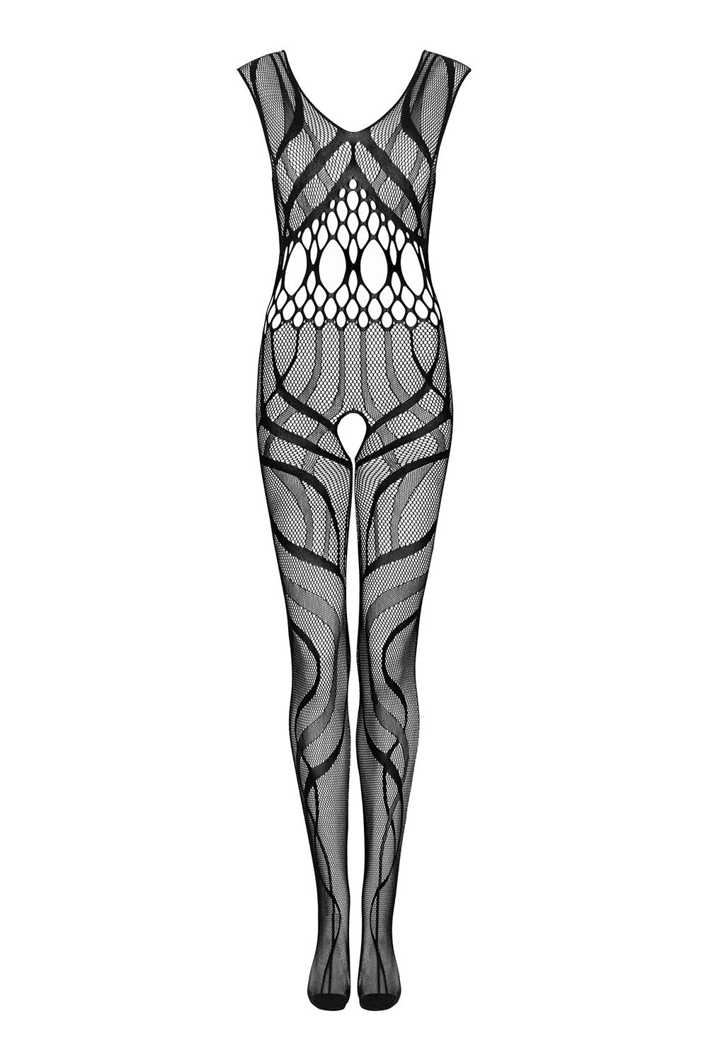 Bezauberndes Bodystocking G328 mit trendigem Muster.Tiefer V-Ausschnitt und pikanter, offener Schritt sind ideal für unanständige Spiele im Schlafzimmer!