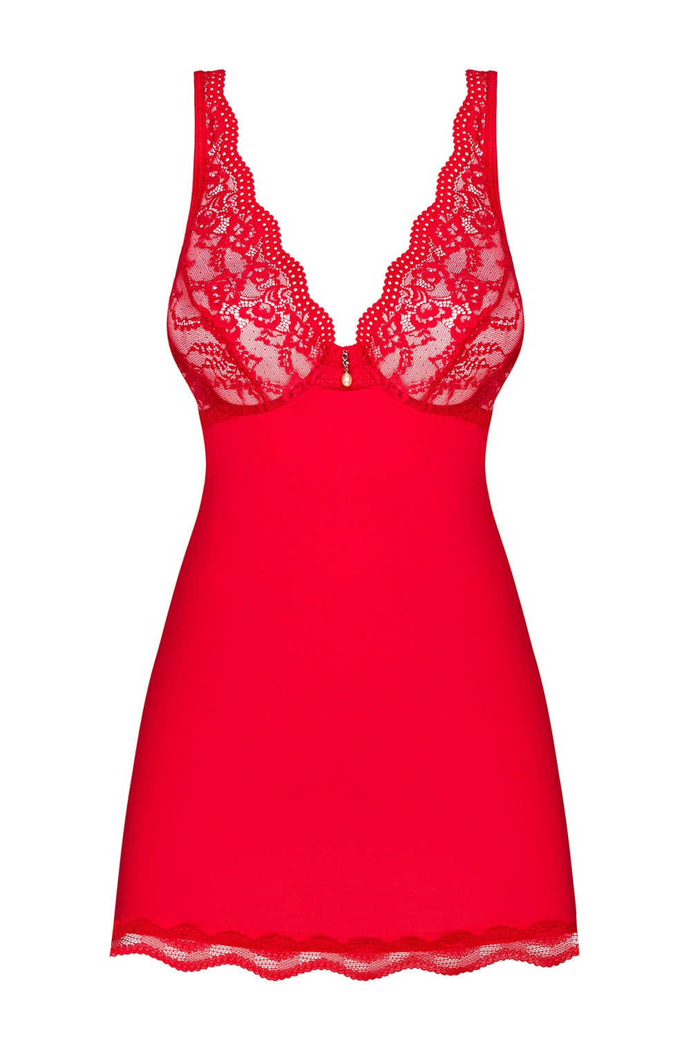 Obsessive Dame Reizwäsche Set 2-teilig Nachthemd String Spitze Sexy Ausschnitt Blumenmuster Luvae, Rot