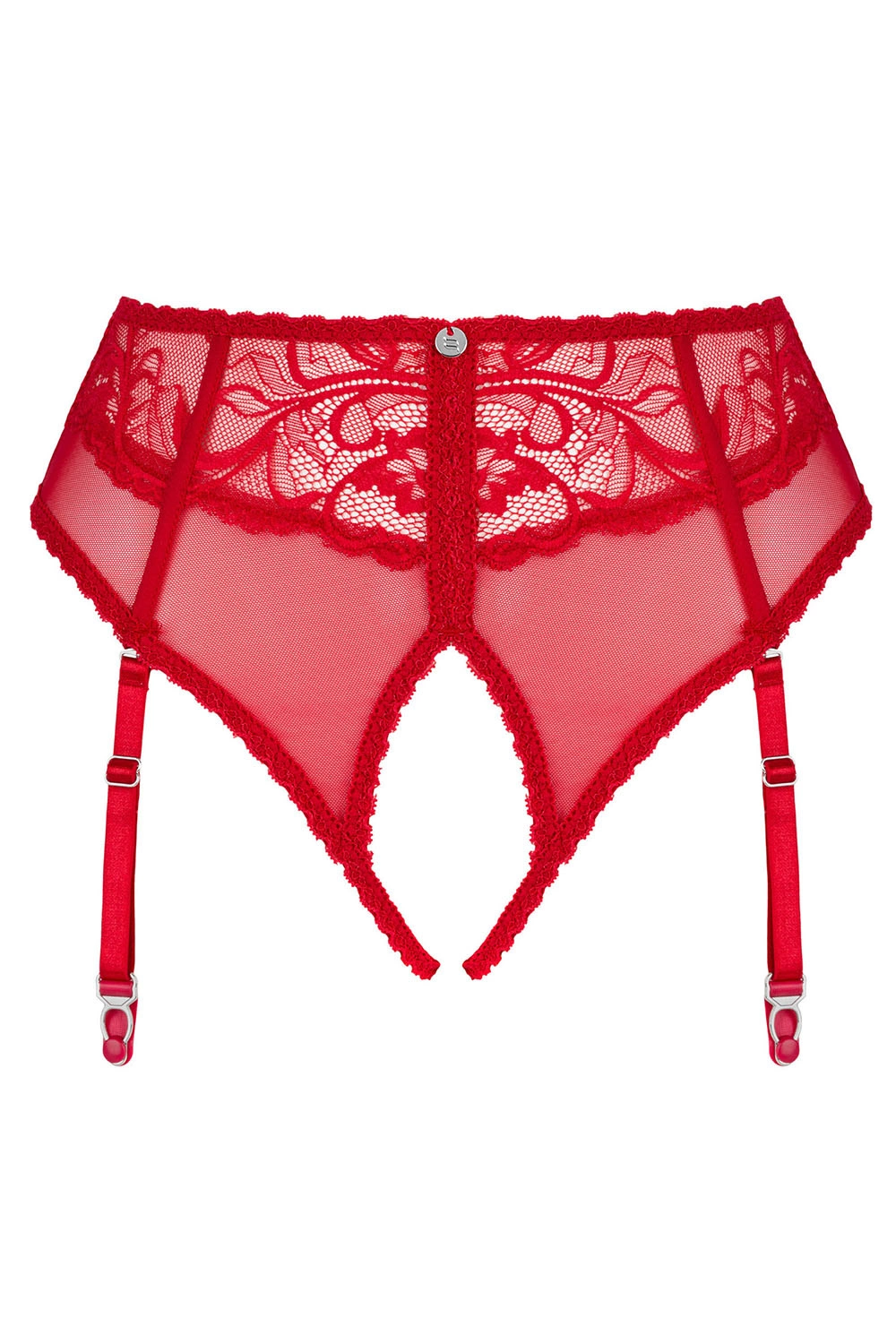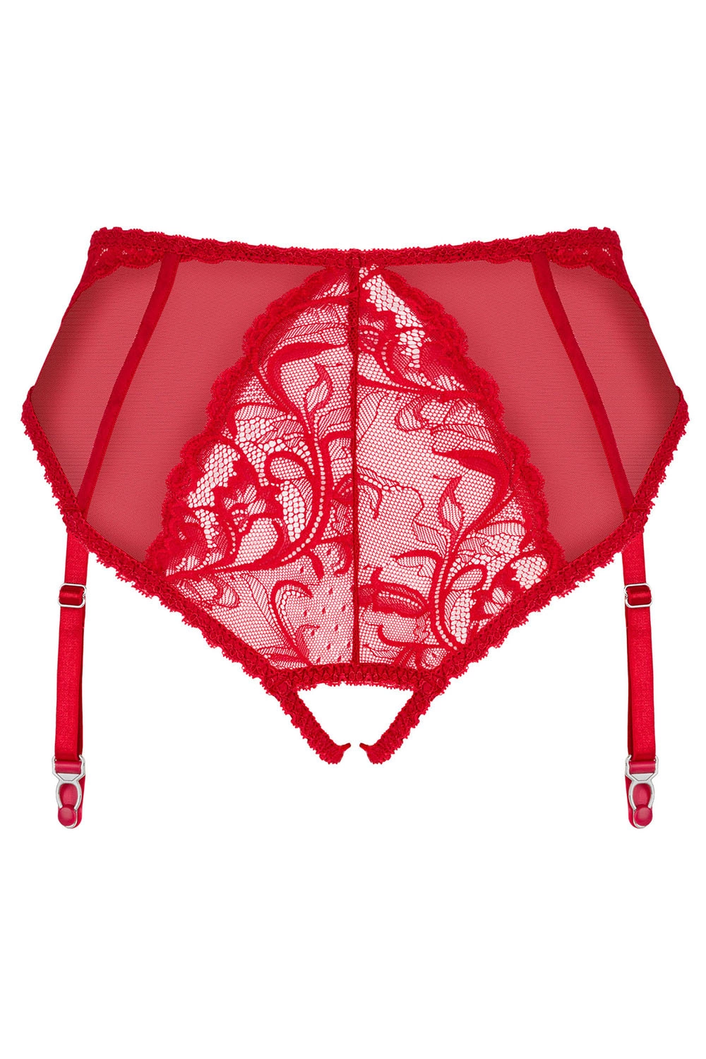 Obsessive Dame Slip mit Strapsen Offener Schritt Spitze Netz Sexy Verführerisch Dagmarie, Rot