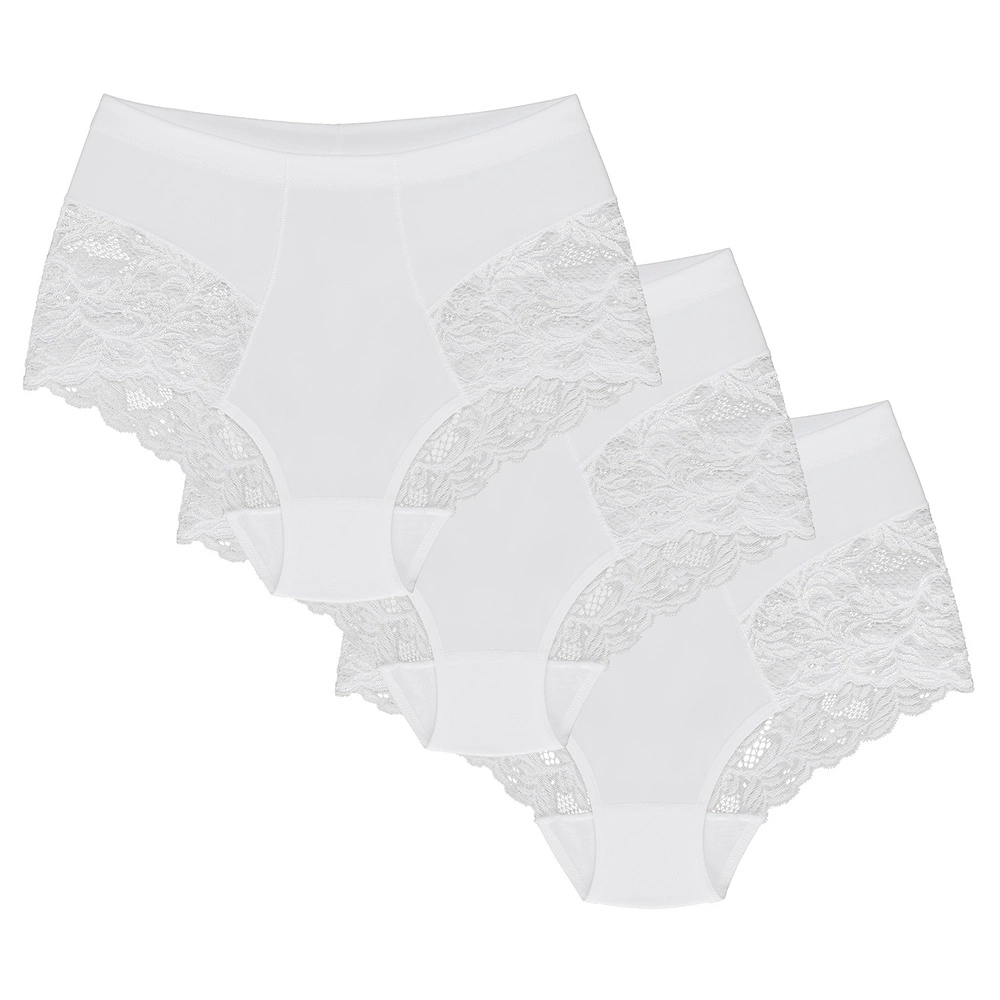 - Damen Slip im 3er Pack; Schmälernder Effekt; Hoch geschnitten; Mit eleganten Einsätzen aus Spitze