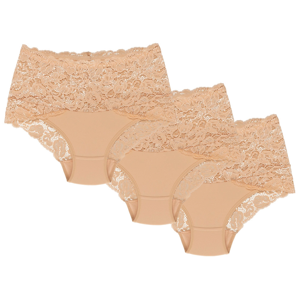 Wolbar Dame Slip 3er Pack Bund Pantys Spitze Elegant Unterhose Unterwäsche WB414,